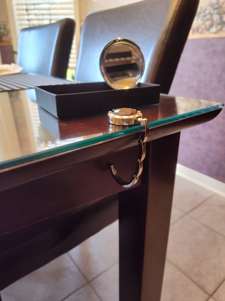 Handbag Hook with Mirror Amber jewel
