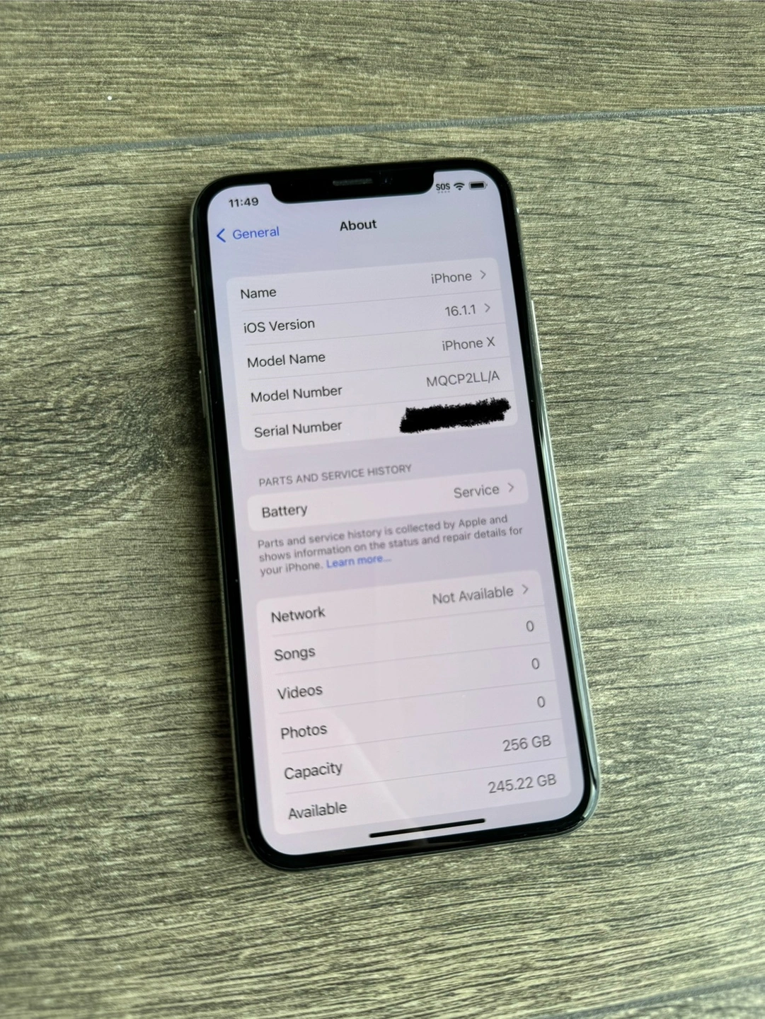 Gently used iPhone X (256GB, white). Screen is in perfect condition, camera works fine, and all buttons are functional. Cash only please!
