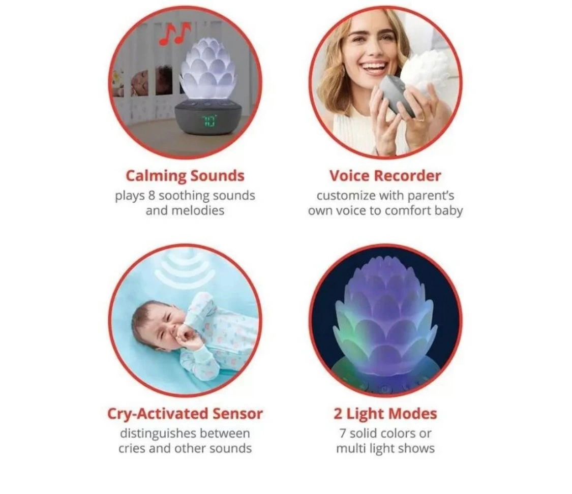 Comforting baby comes naturally with Skip Hops décor-friendly botanical soother. Designed to automatically respond to babies cries, it features eight soothing melodies and sounds plus a voice recorder for customized comfort. Even better? It’s also a nightlight with seven different colors plus a multi-light show mode for a calming animated glow. There's even a thermometer so you’ll always know if baby’s room is a comfy temperature.