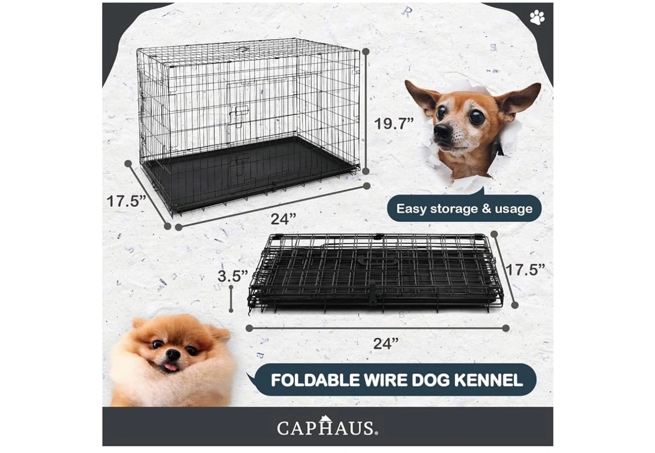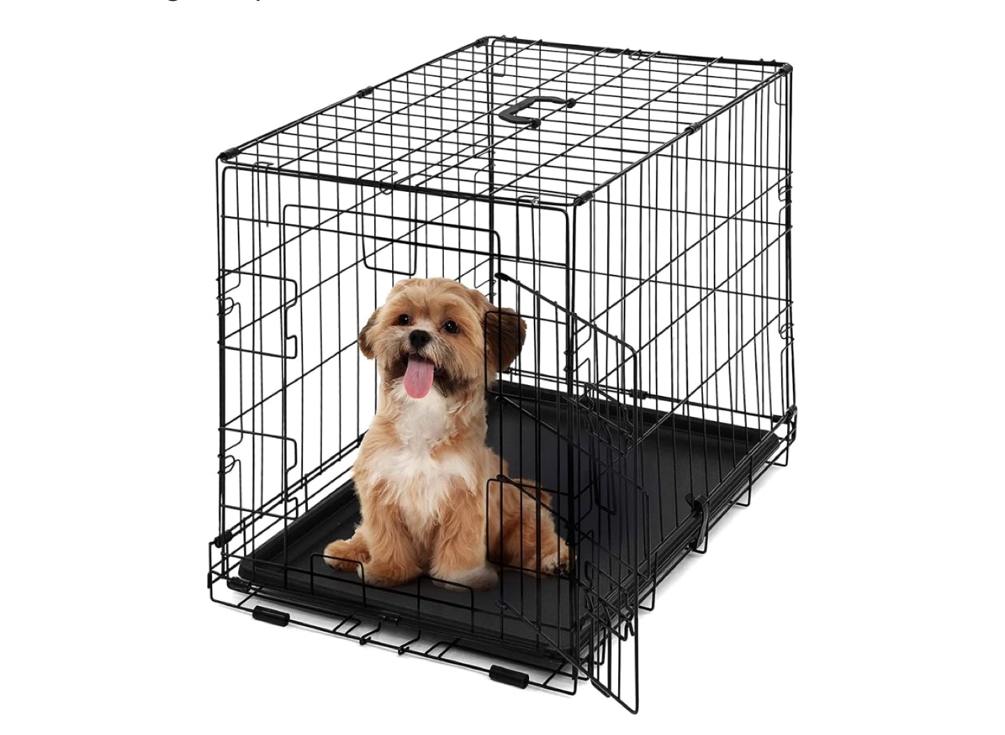 This is a black wire dog kennel. It folds for easy storage and includes a pull-out tray. "USED"(Goods condition) used for a few months.