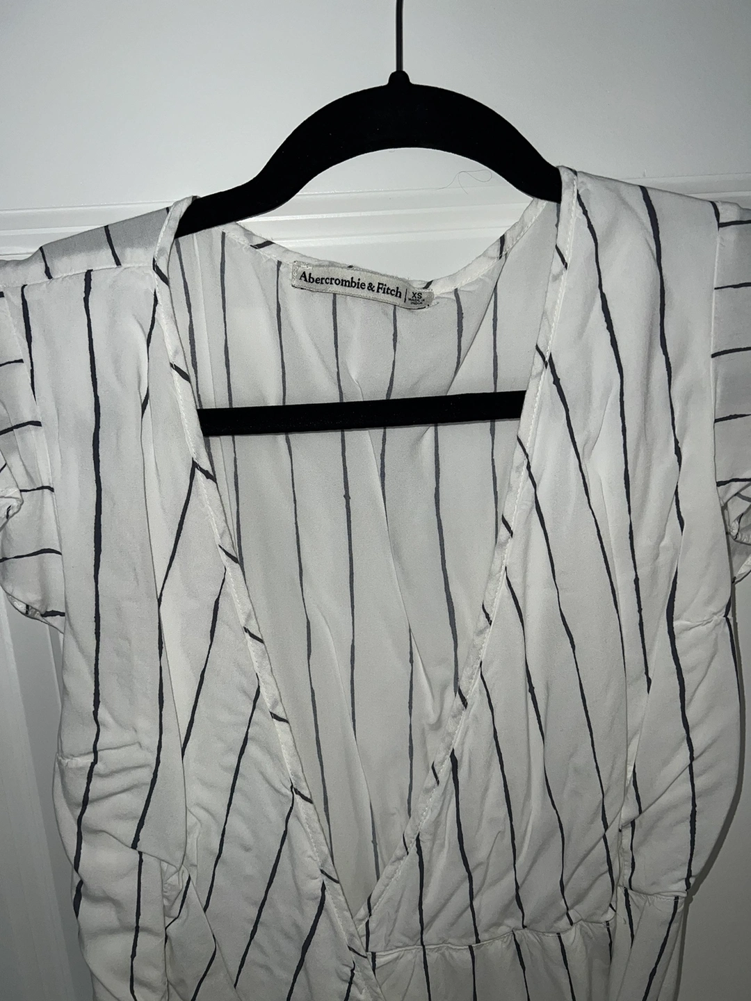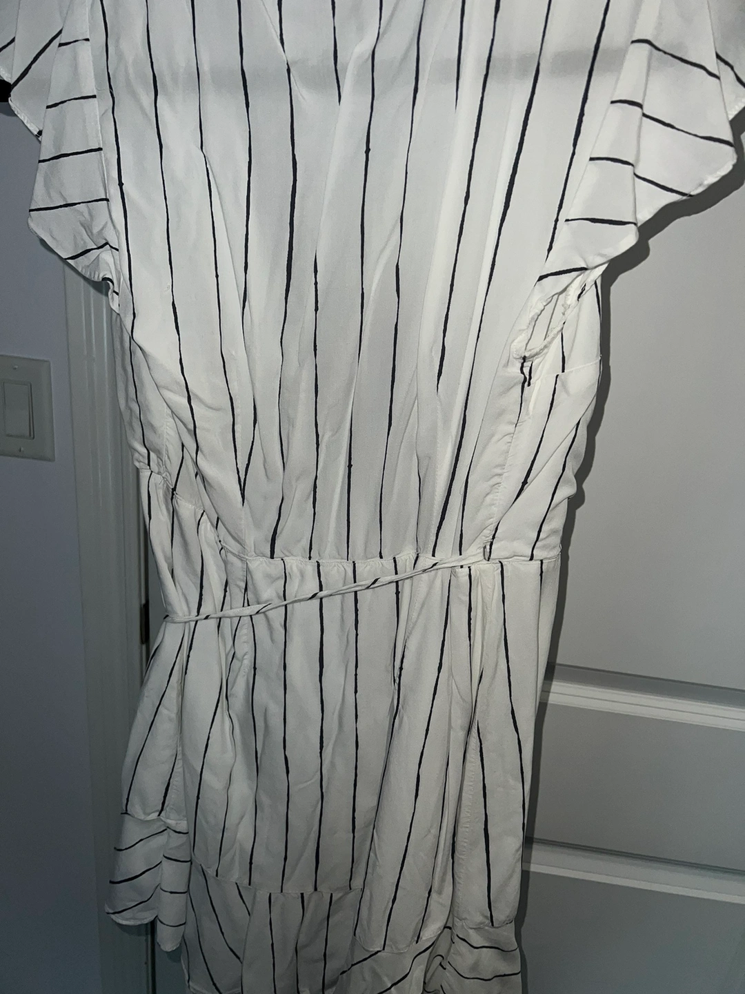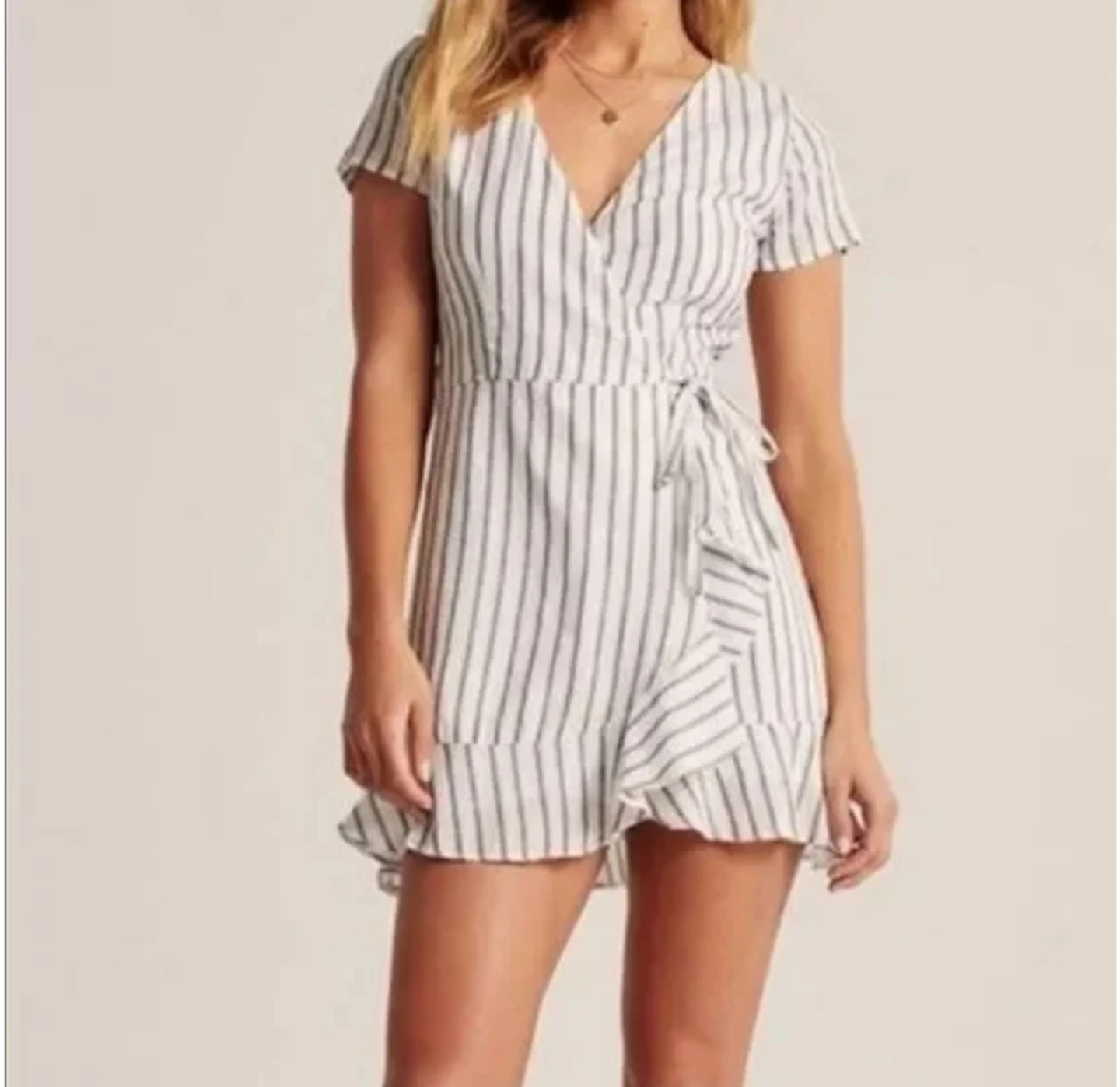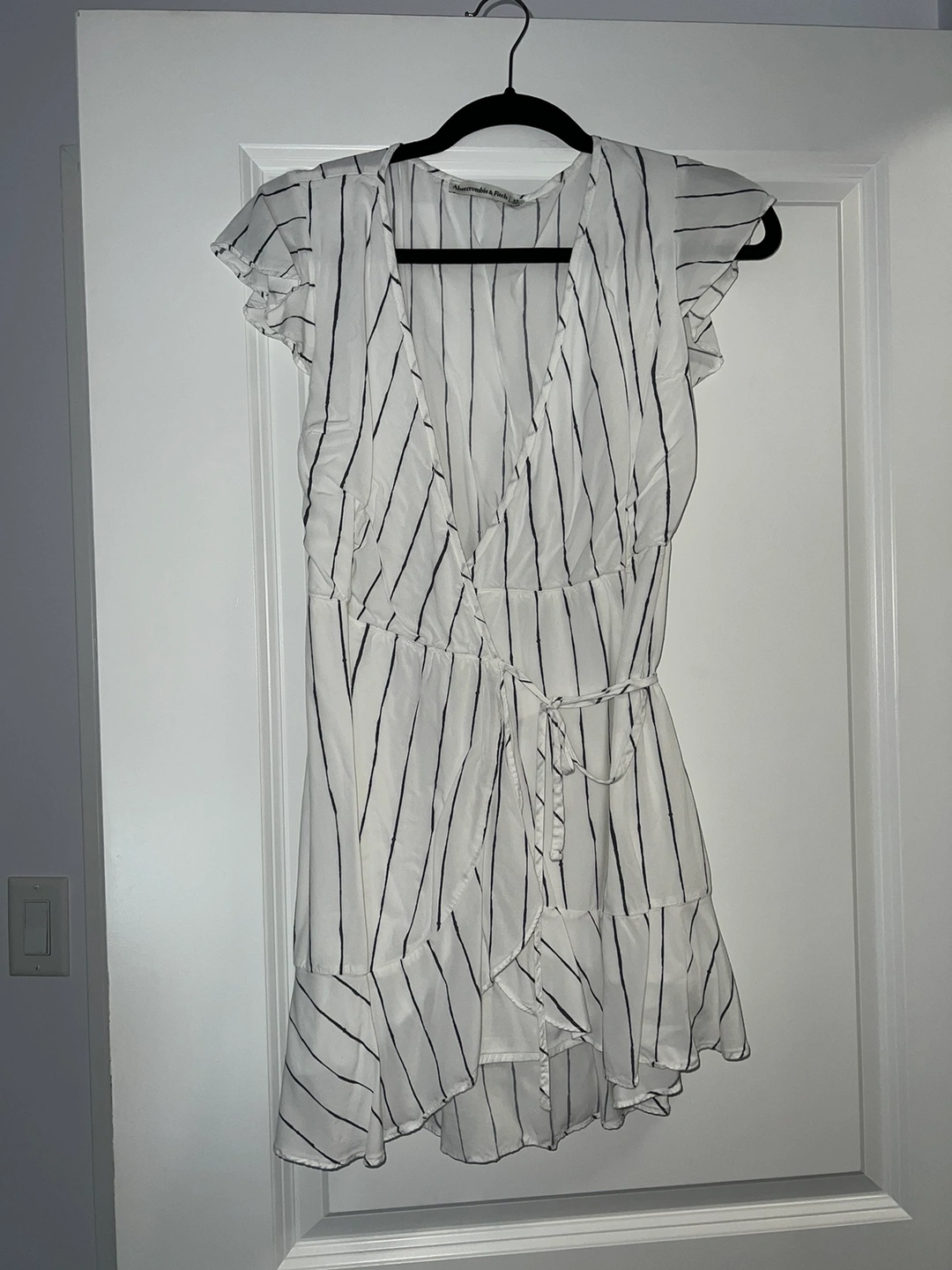 Abercrombie & Fitch White Blue Striped Wrap Ruffle Mini Dress