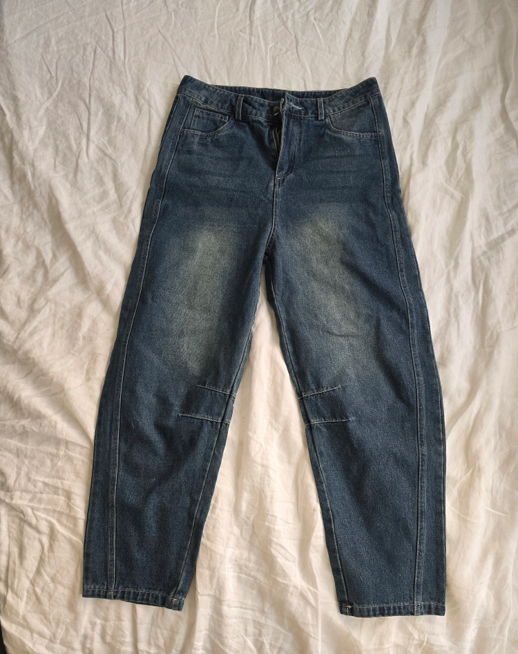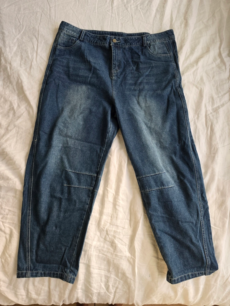 These are 2 pairs of soft blue denim jeans. They are the new trendy barrel relaxed fit. They have a zipper fly and belt loops. Two sizes. Can be purchased together for $50 or $30 each.