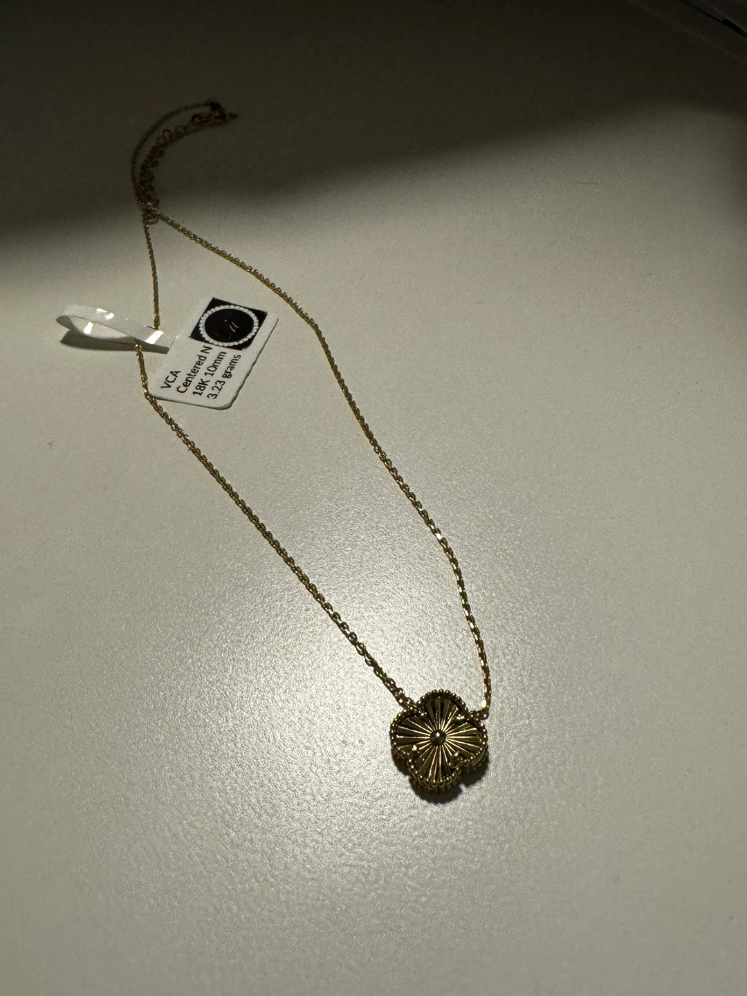 18k Gold necklace with a four leaf clover charm - vca inspired. 16-18” length.