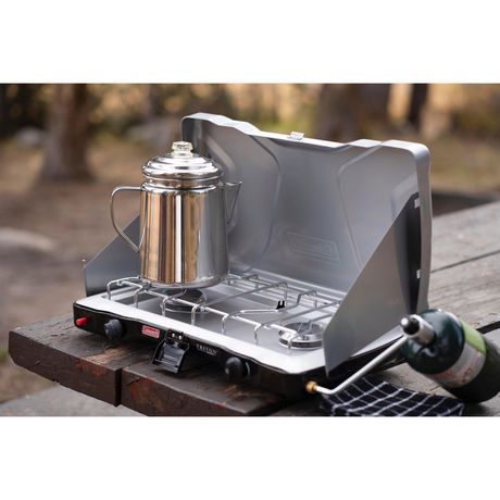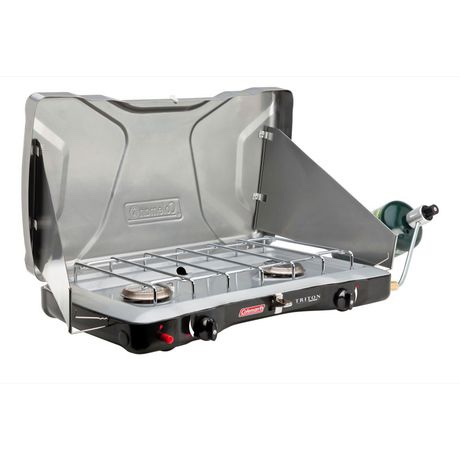 100Mississauga, Brandnew Coleman Triton Series InstaStart 2-Burner Propane Stove $140 • Wind Block™ panels help shield burners from wind and adjust for various pan sizes • Instastart™ ignition for push-button, matchless lighting 15.90 x 7.80 x 24.80 in • PerfectFlow™ technology provides consistent performance, even in extreme conditions • 22,000 total BTUs of cooking power • Fits a 12-in. and 10-in. pan at the same time • 2 independently adjustable burners give you precise control for 2 temperature zones • k Durable, chrome-plated grate is removable for easy cleaning • Aluminized steel cooktop for durable rust-resistance • Large rugged latch for secure storage and transport • Lasts up to 1 hour with both burners on high on one 16.4-oz propane cylinder (sold separately) • Perfect for camping, hunting, tailgating and other outdoor occasions