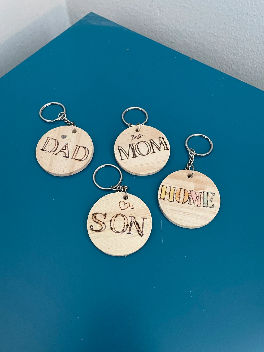 - set of wood keychains