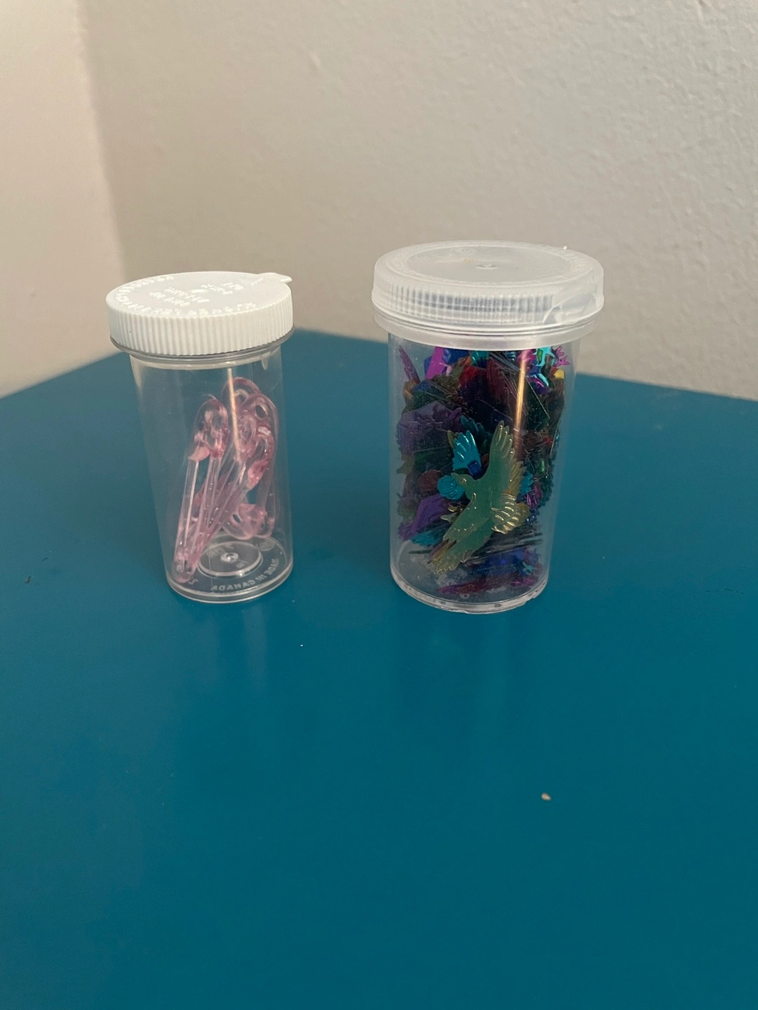 - faux pink plastic safety pins