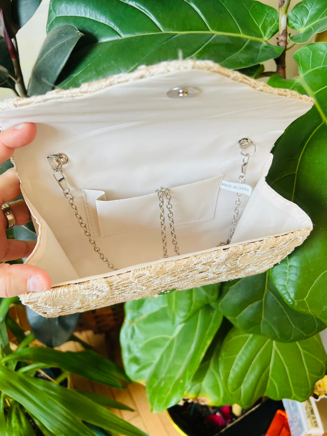 Offering this lovely beige/off white embroidered handbag for FREE.