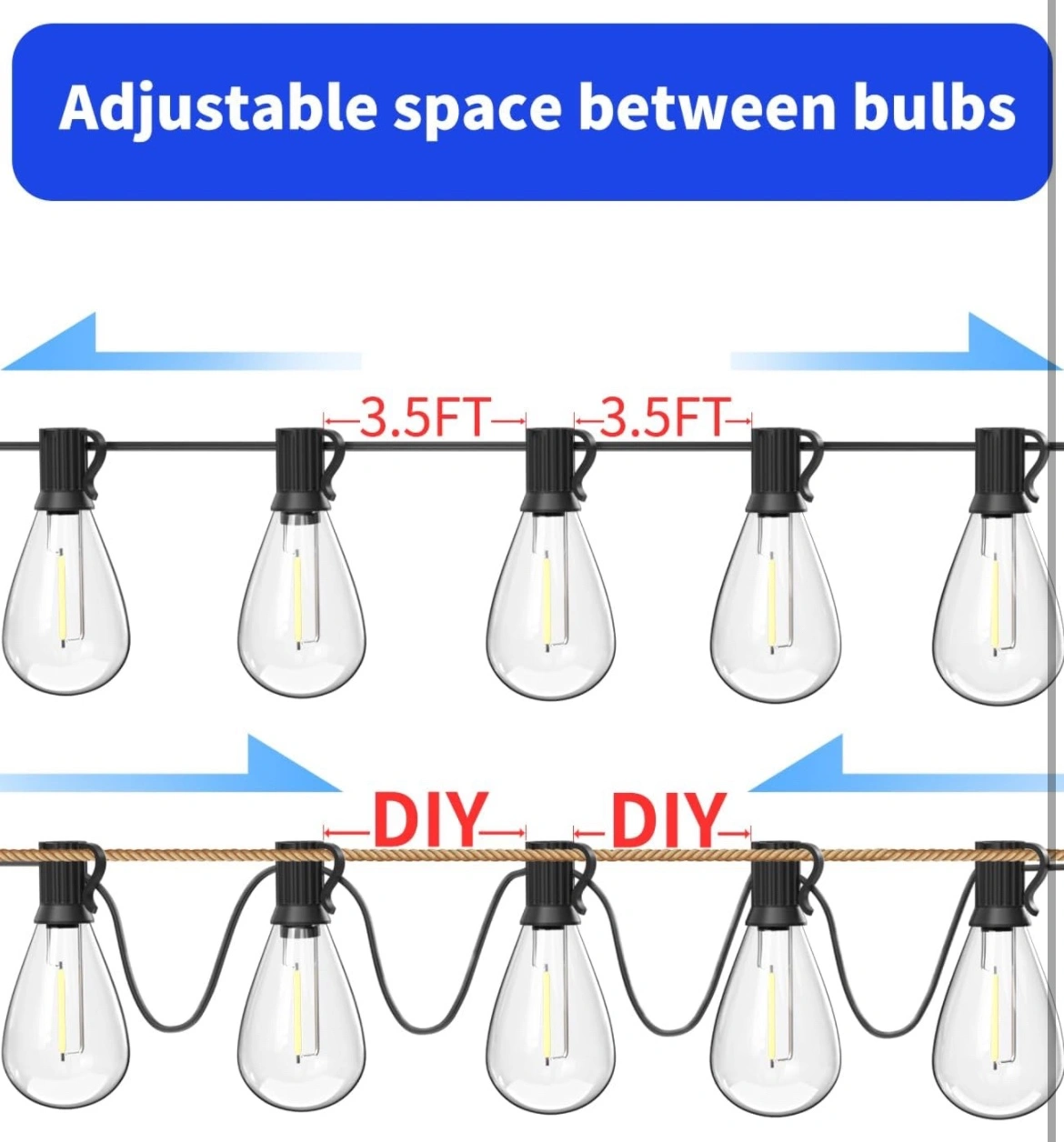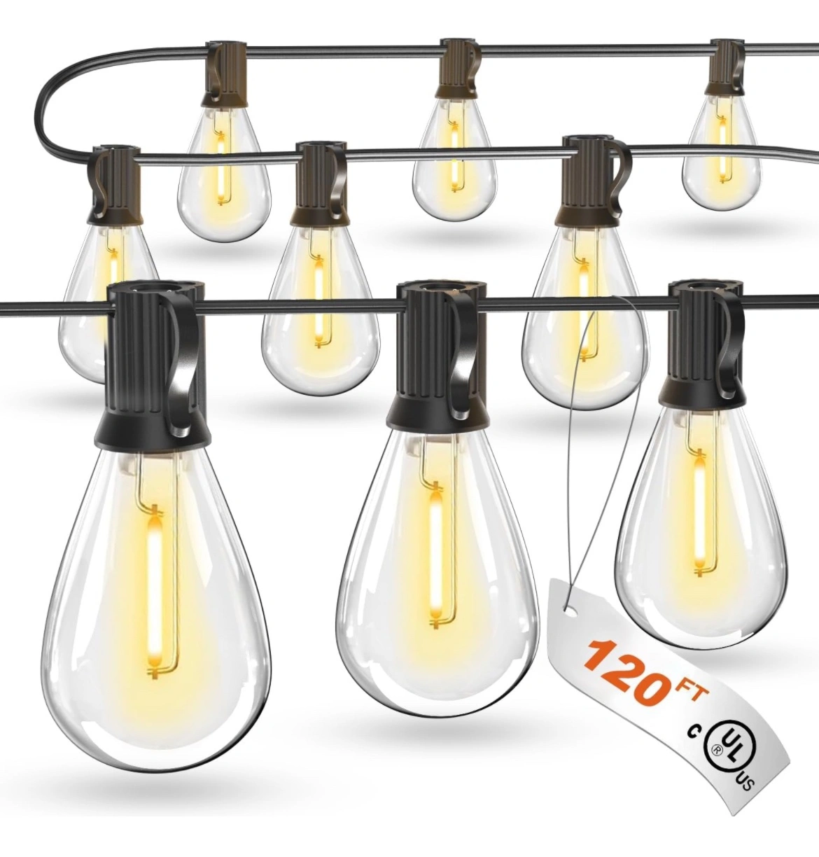 530Brand new never used price is firm! These 120ft outdoor string lights have heavy-duty cords and 30 shatterproof Edison bulbs, allowing connection of up to 24 strings for large areas. The energy-efficient LED bulbs reduce electricity usage by 90% and have a long lifespan. The set includes 30 shatterproof bulbs with added protection for durability. Designed for outdoor use, these waterproof, weather-resistant lights withstand rain, sun, wind, snow, and extreme temperatures.