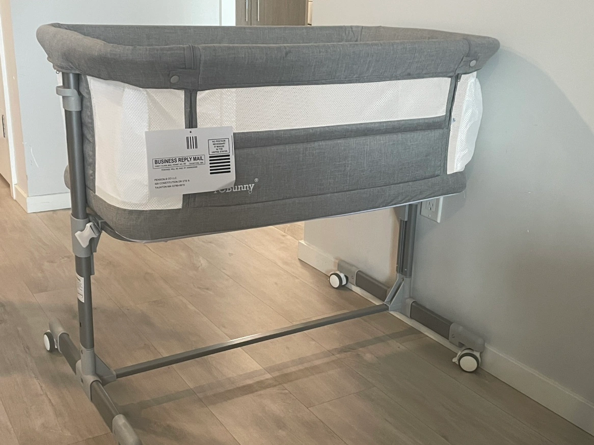 Brand new TCBunny 2-in-1 Baby Bassinet & Bedside Sleeper, Adjustable Portable Crib Bed for Infant/Newborn Baby, Grey. Price on Amazon $224 incl taxes