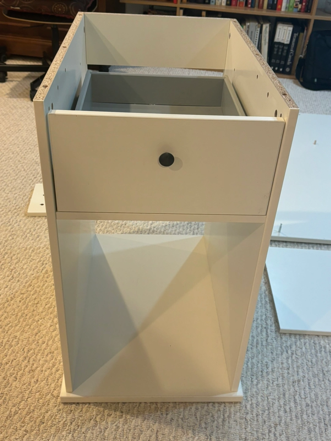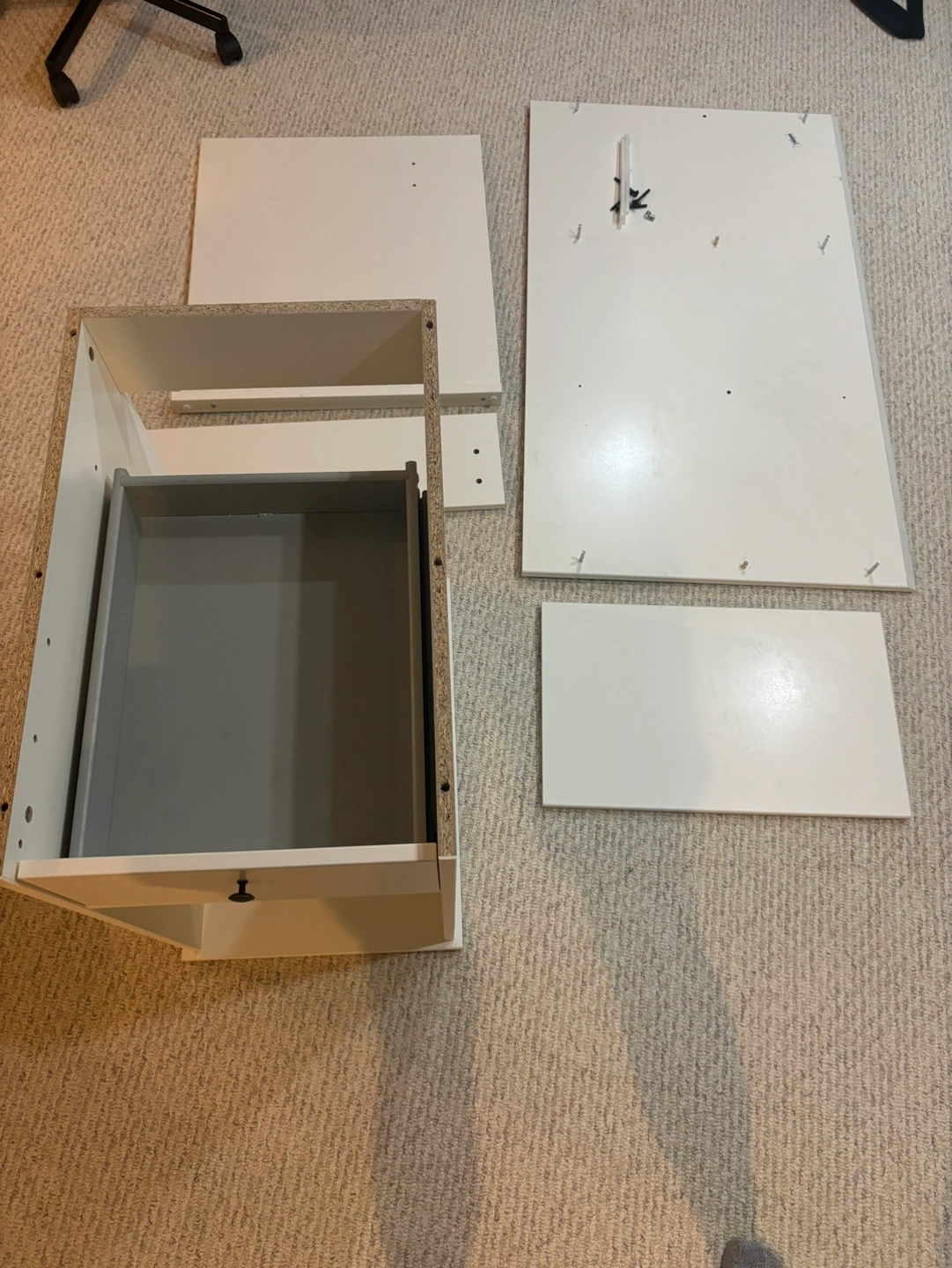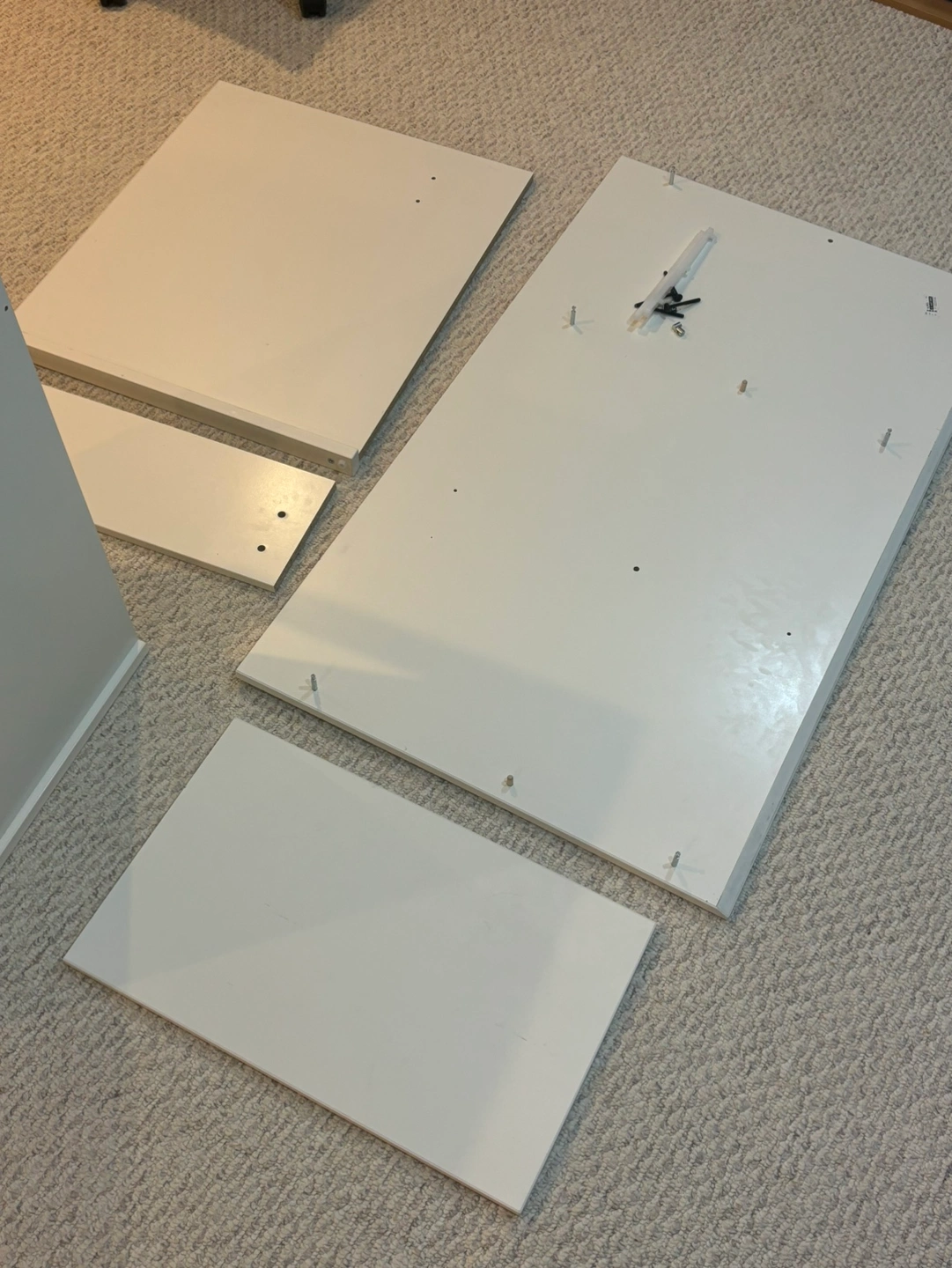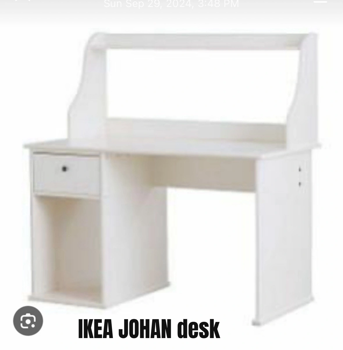 Serious/committed purchasers only please. Very lightly used IKEA Johan desk. One drawer. Half is assembled (the hard part-the drawer) and the rest is carefully taken apart with all hardware complete and included. Pickup only. Pet and smoke free home. Very clean. Already reduced price from 65 to 40. First come first serve!