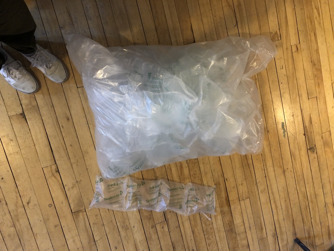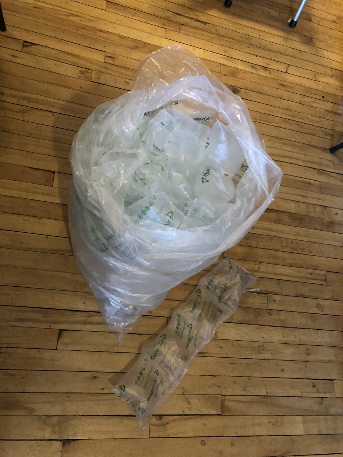 They’re the inflated bubble pouches used as filler for packing. We always get these with our orders. One giant garbage bag full but there’s a bit more not pictured.