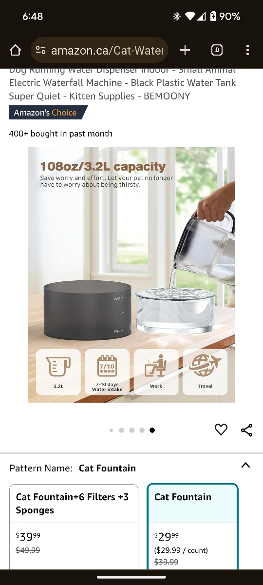 227Used for a week and then in the box as the dog didn't like it and avoided it. large capacity over 3 Litres Cat Water Fountain: 3.2L Pet Drinking Bowl - Automatic Dog Running Water Dispenser Indoor - Small Animal Electric Waterfall Machine - Black Plastic Water Tank Super Quiet - Kitten Supplies - BEMOONY https://a.co/d/7C1BHTE https://a.co/d/7C1BHTE pick up at Jarvis and esplanade, downtown Toronto.