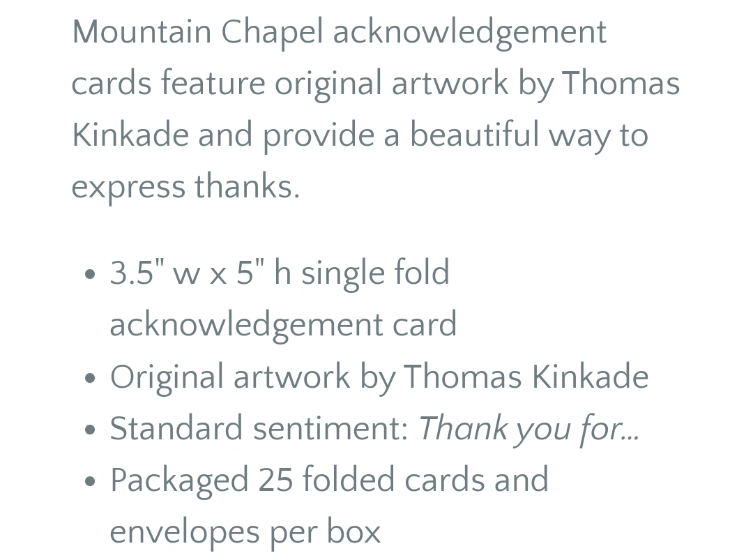 Thomas Kinkade Mountain Chapel - Thank You Cards ($54 Value)