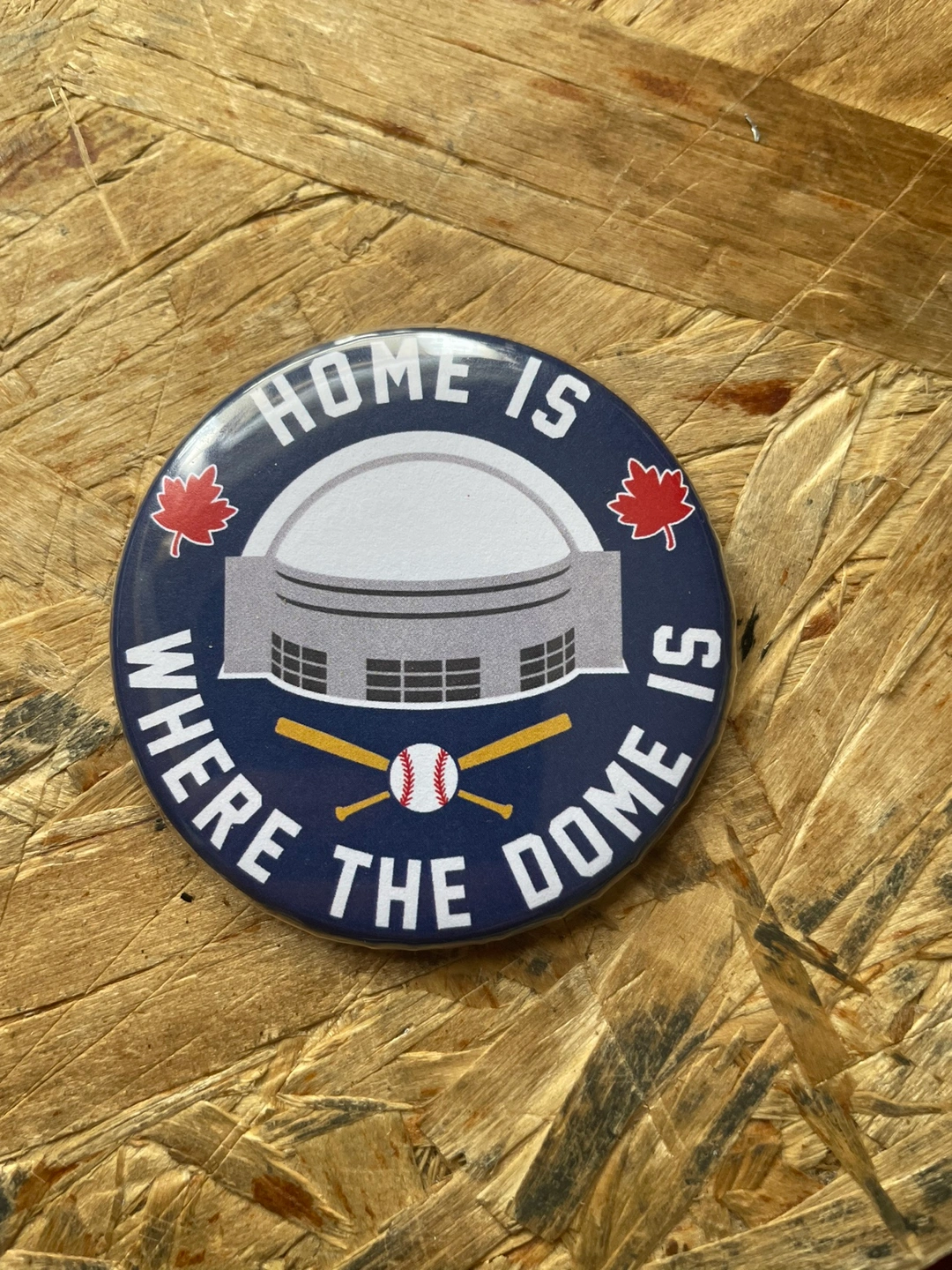 A round magnet featuring the SkyDome and the phrase "Home is Where the Dome Is". It is 2.25 inches in diameter and is magnetic on the back.