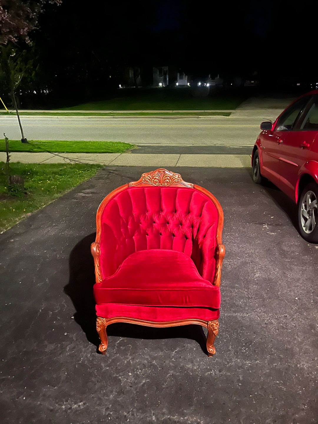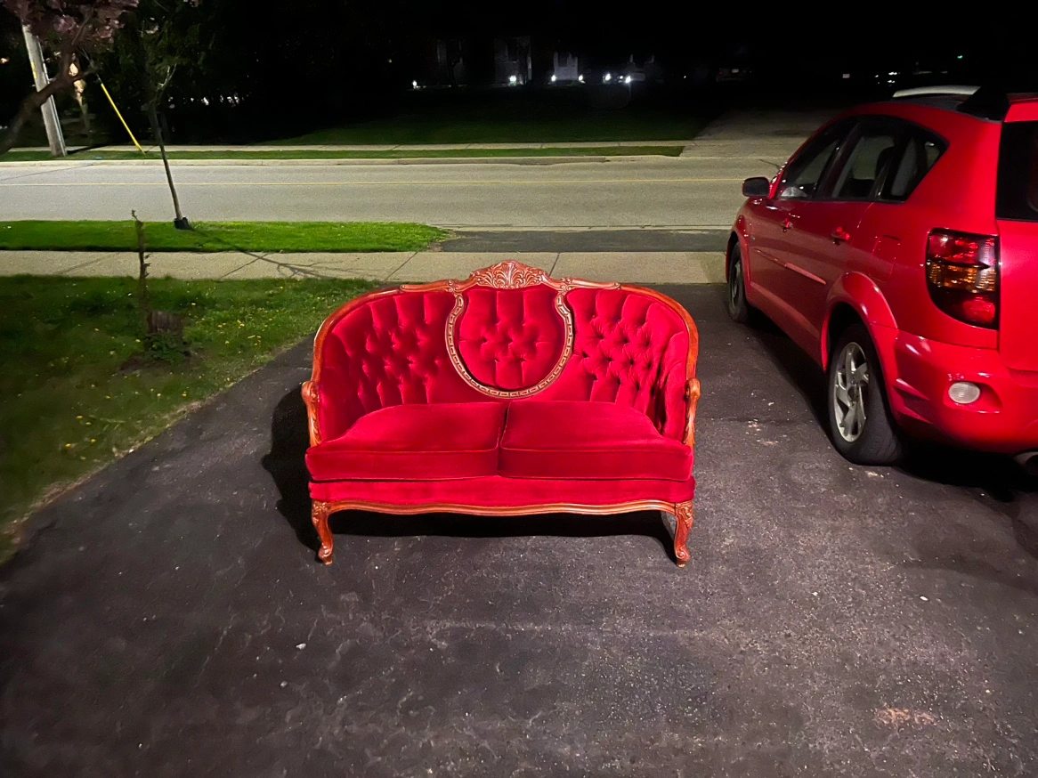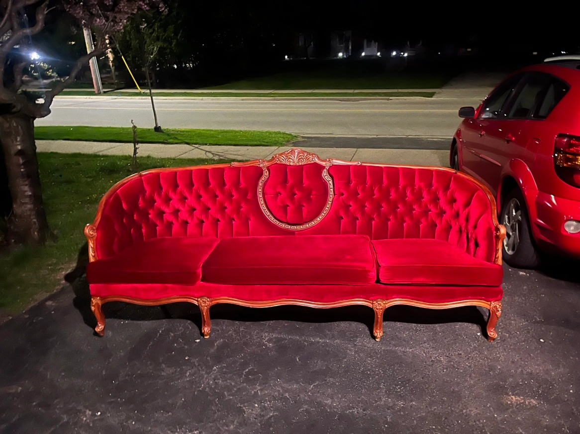 This three piece set includes a sofa, a love seat, and a single armchair. From a non smoking home.