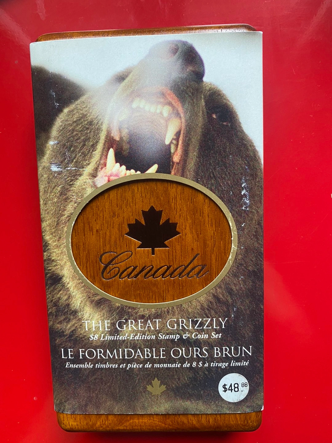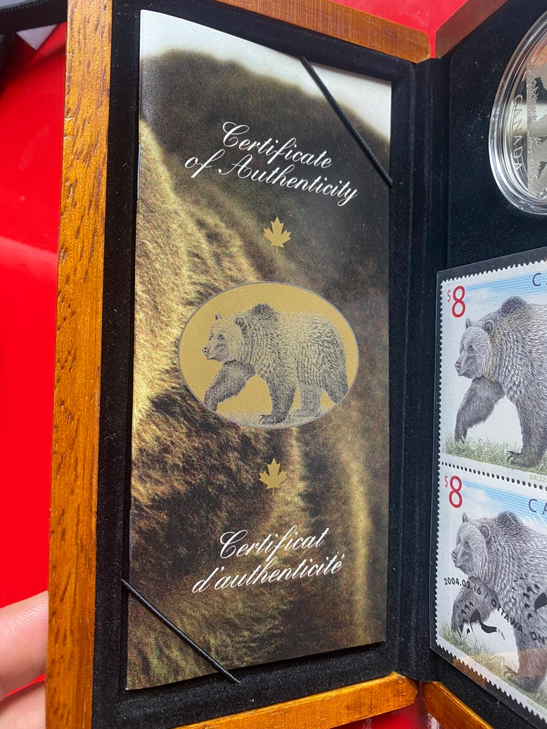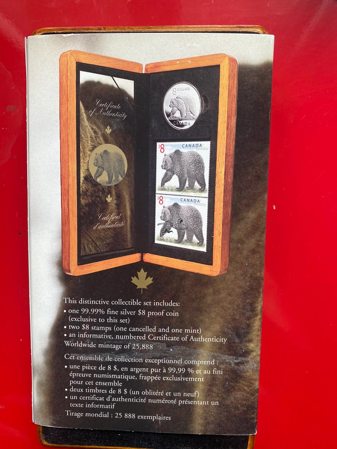 Canada 1997 $8 Grizzly bear UNC mint silver coin and stamp set🍀