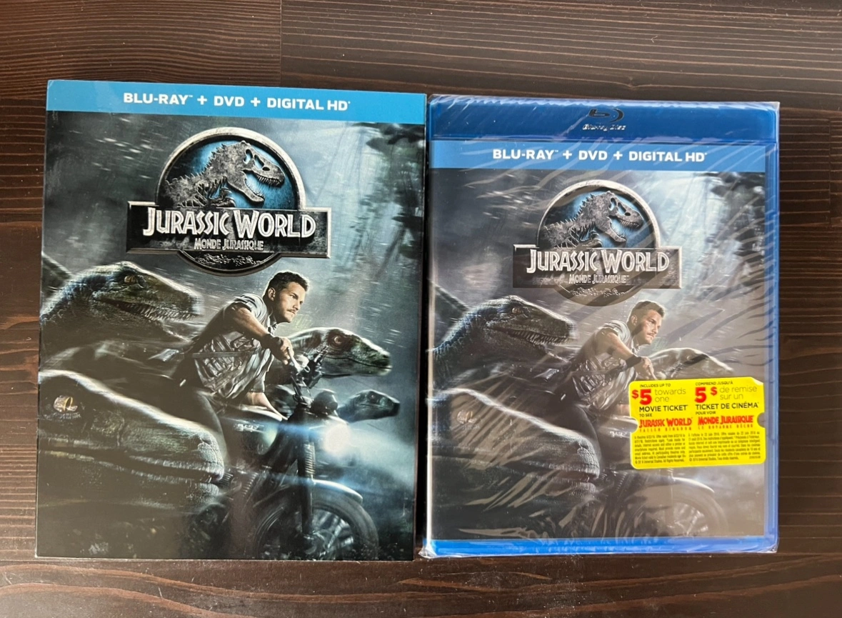 Blu-ray + DVD + Digital HD of Jurassic World. Includes special features.