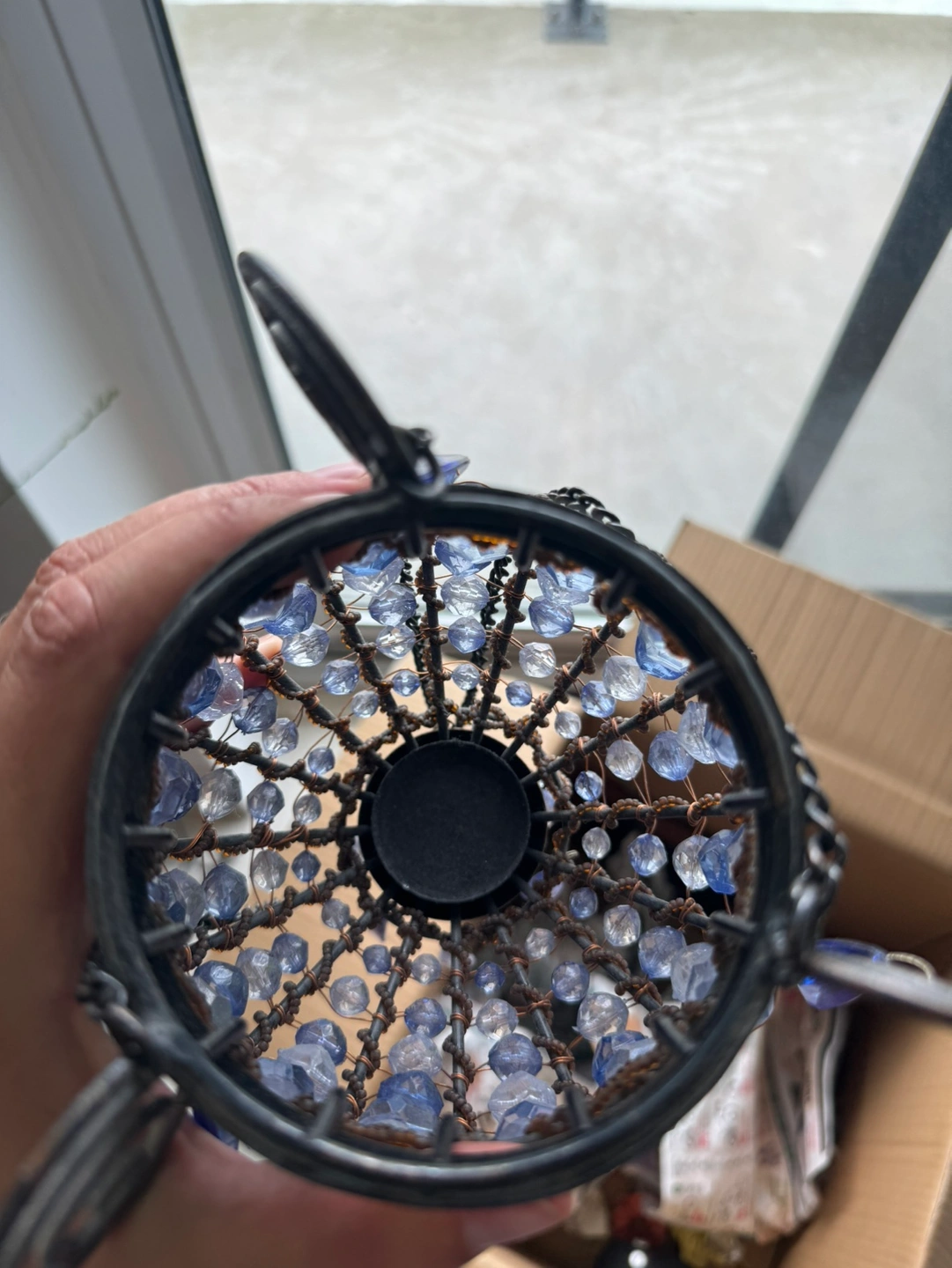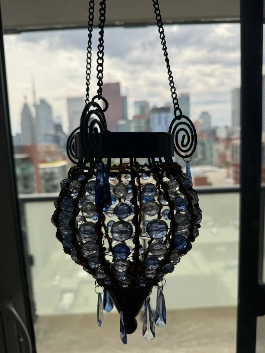 Great condition hanging candle holder made with blue glass, copper wire and metal. For garden or home. Pickup near sherbourne and Adelaide st east or some ttc stations. Thanks!