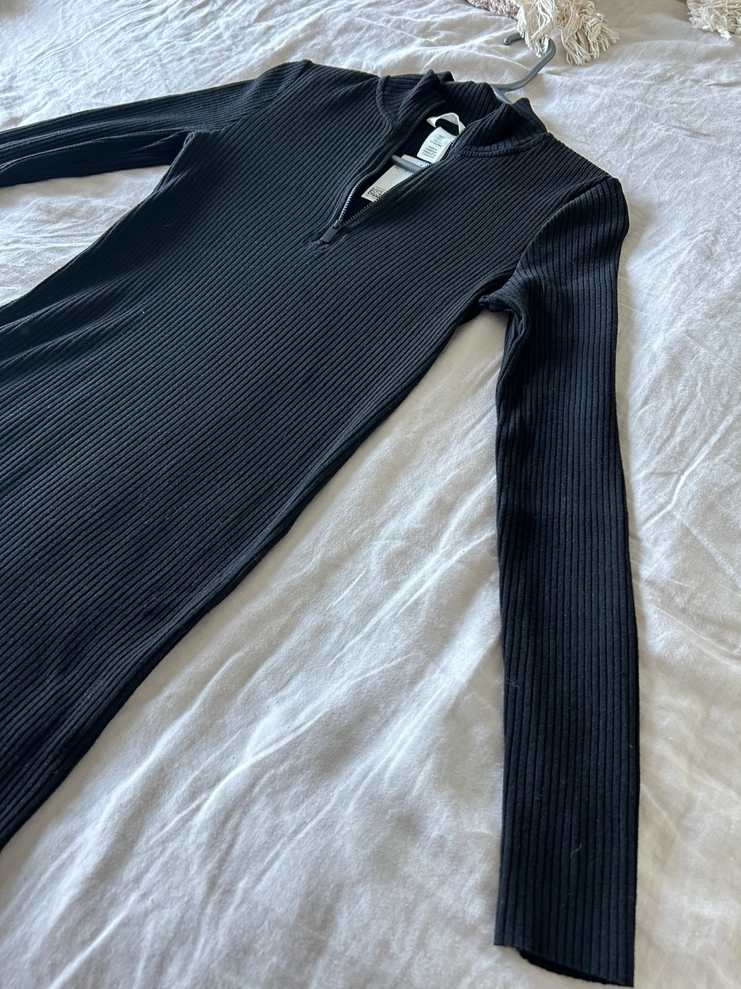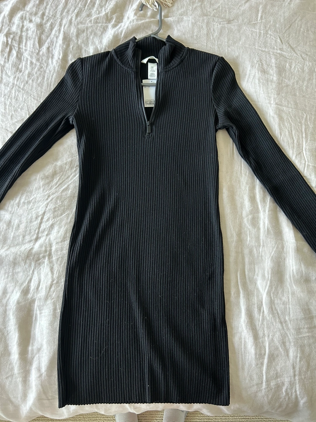 Black ribbed long sleeve dress with a zipper up the front. Short length. NEVER USED! Pickup in Liberty Village!
