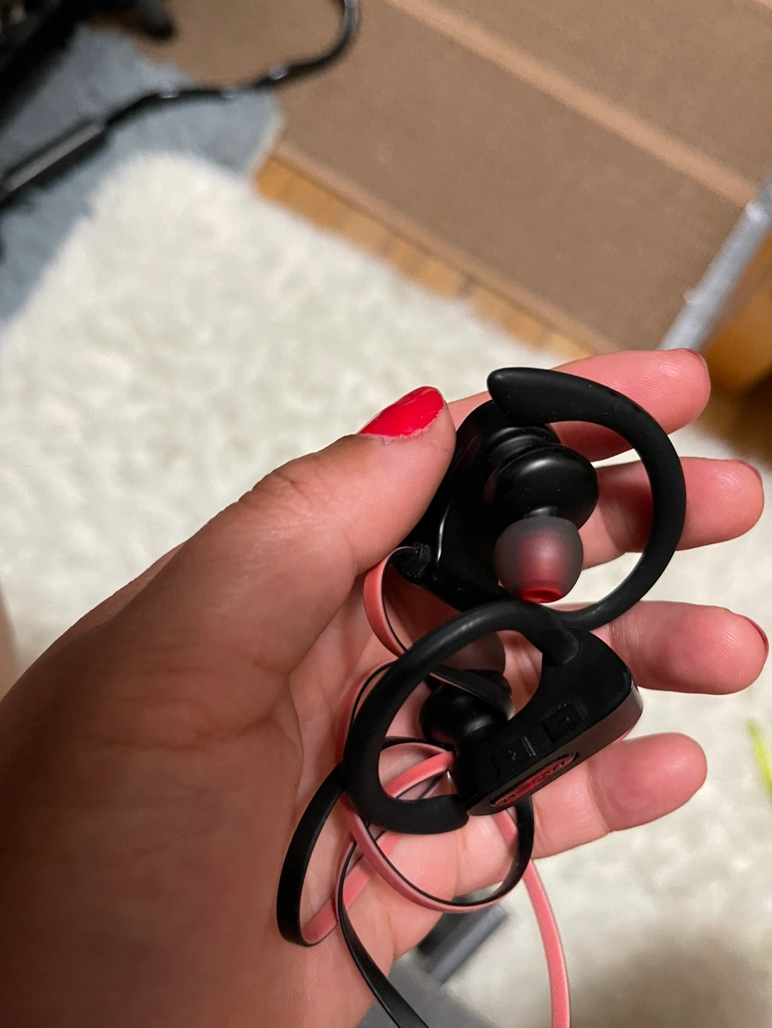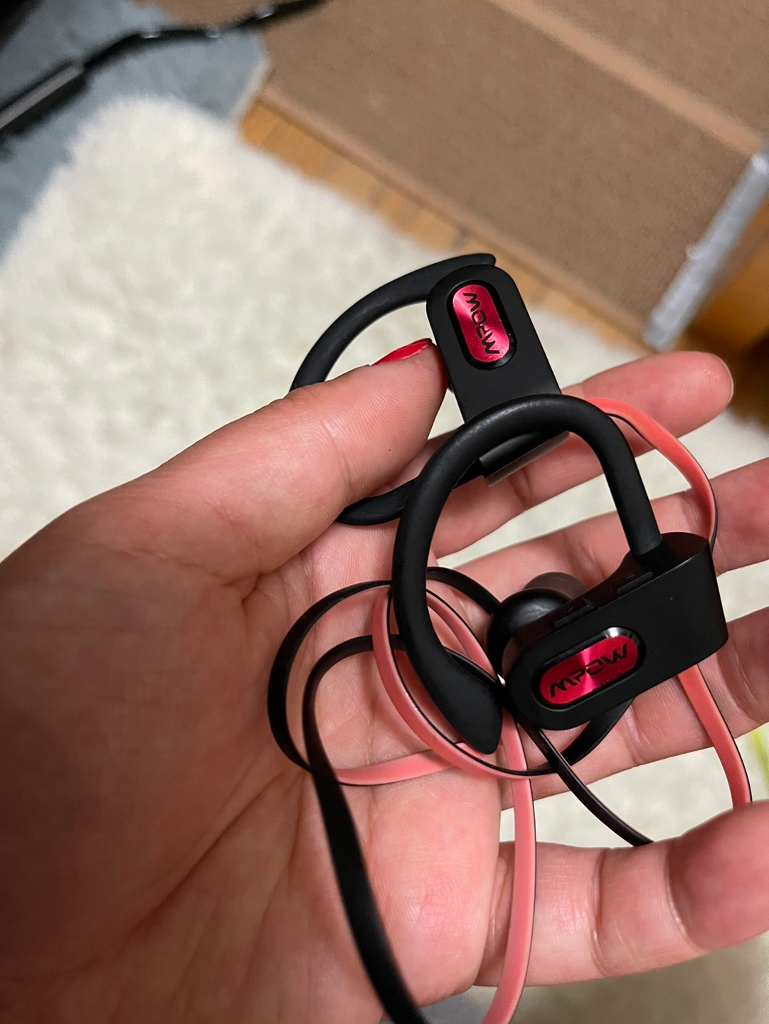 Bluetooth Earphones with a wire that can hang on your neck.