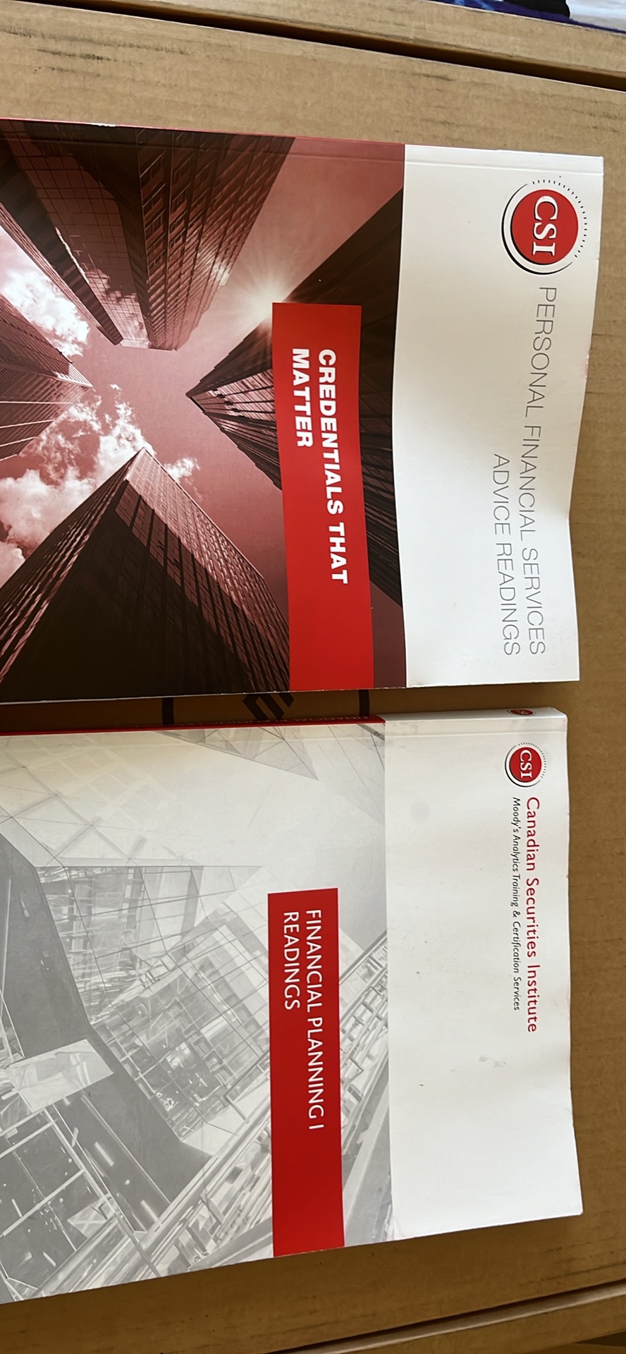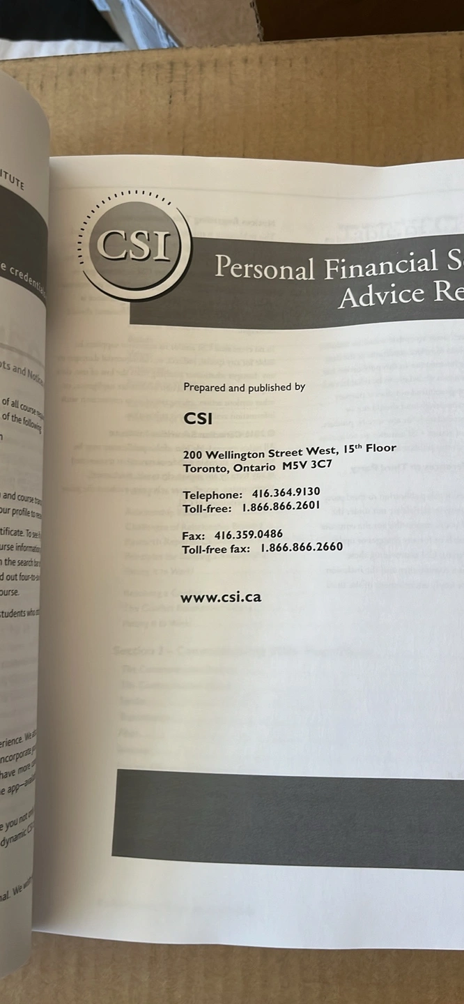 Two books: “Personal Financial Services Advice" and "Financial Planning I Readings" - both published by the Canadian Securities Institute. Brand new unused books - decided not to appear for exam so selling here.