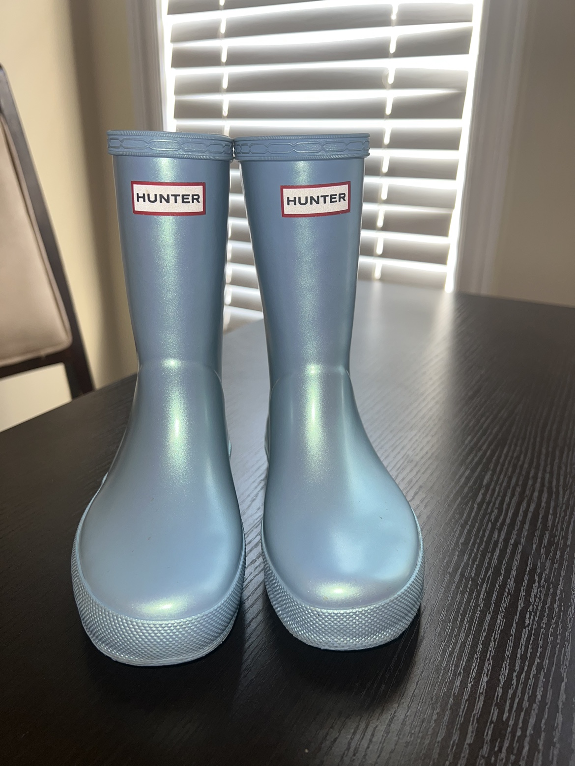 *firm price* Selling cute light blue iridescent Hunter-Nebula boots for kids in size 12 US (UK 11)-only worn twice. They are excellent to wear (great condition).
