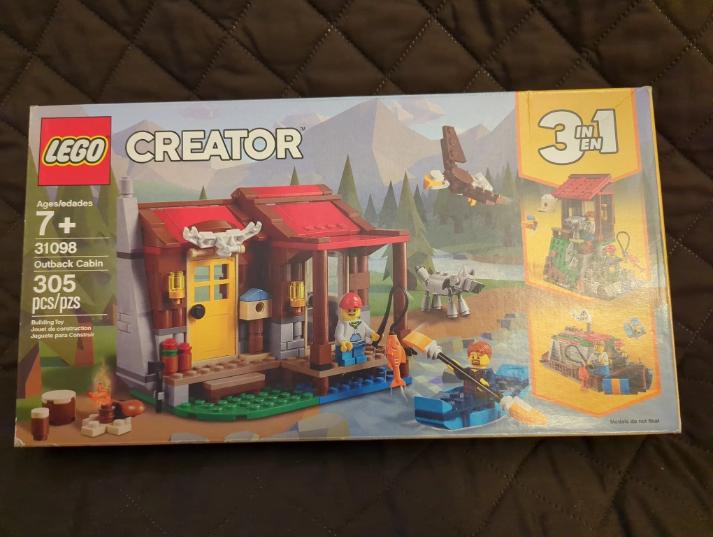 A LEGO Creator 3-in-1 building set. It can be built into three different models: an outback cabin, a fishing boat or a lookout tower. Includes 3 minifigures. *Lego Set is Retired from Lego.com* I am: - willing to drop off depending on the area ($)