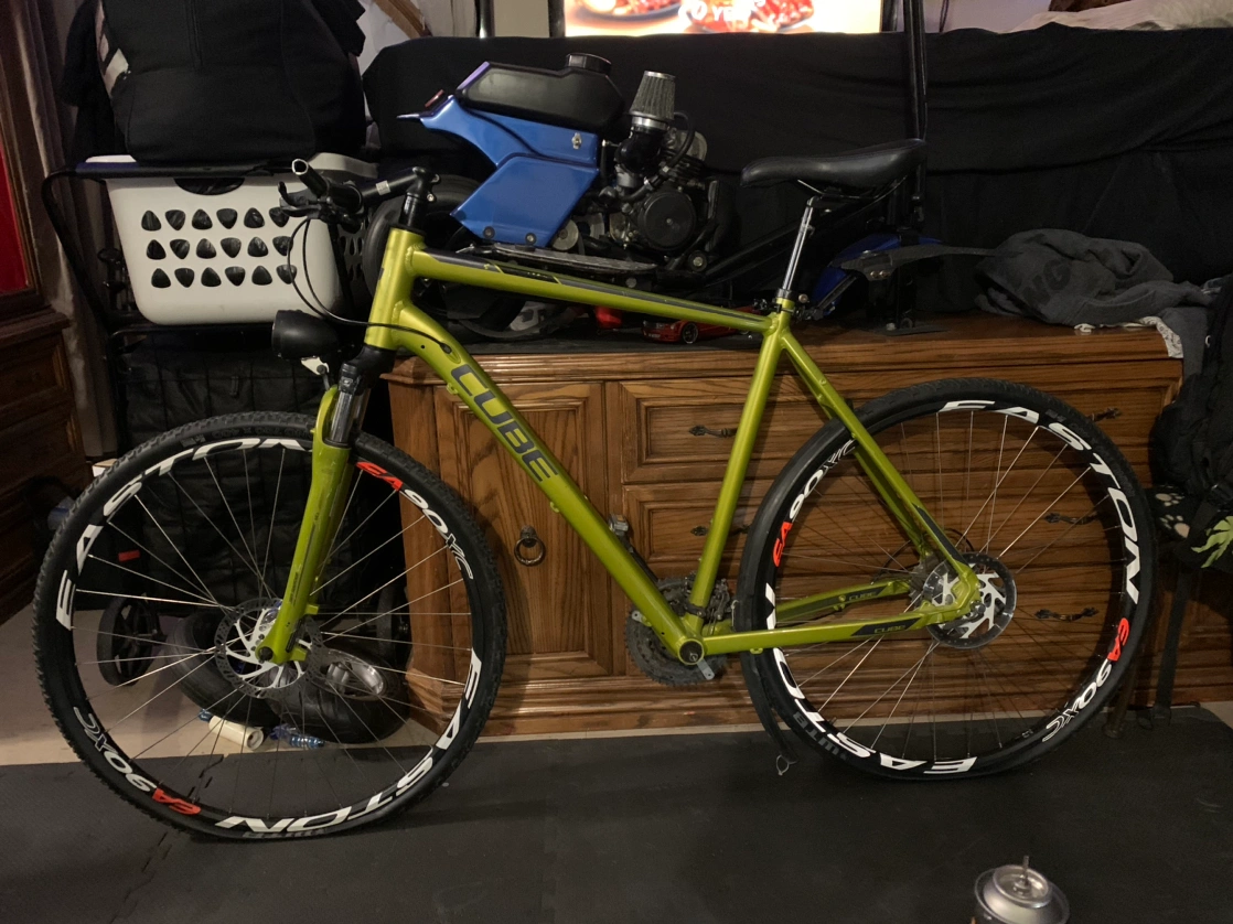 Custom Cube mtb with 700x40C WTB NEW tires and NEW TUBES .Alexrims with glow in the dark reflective EASTON decals , shims no Hub’s , NEW HANDLE BAR GRIPS , NEW handlebar pulls , NEW front fender, NEW steer tube spaces and cap. …and it has Shimano Hydraulic brakes on the front and rear . Black spider web saddle and black saddle post . ( there is an alternative saddle available upon request . NO LOW BALLERS ! NO TEST PIOLETS ! CASH .
