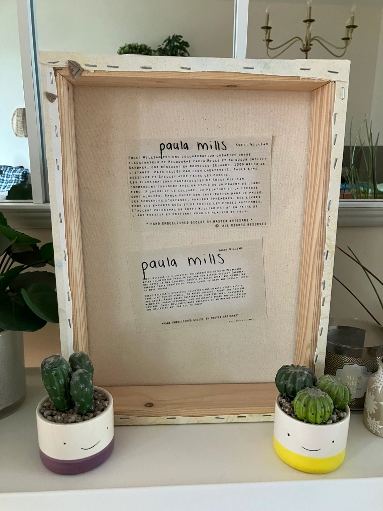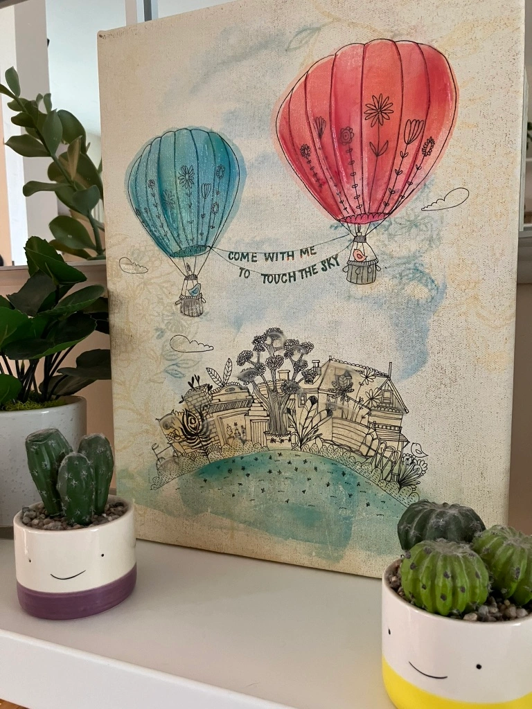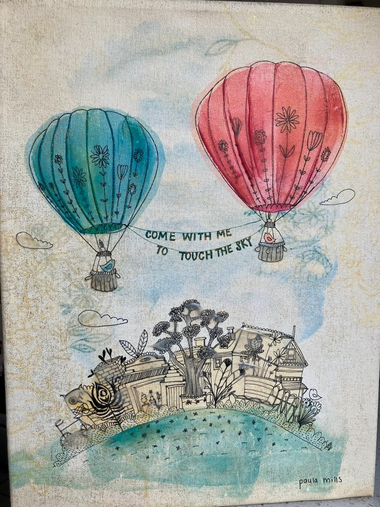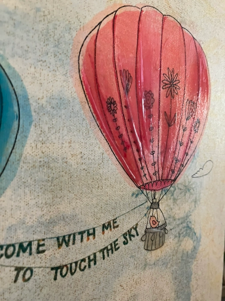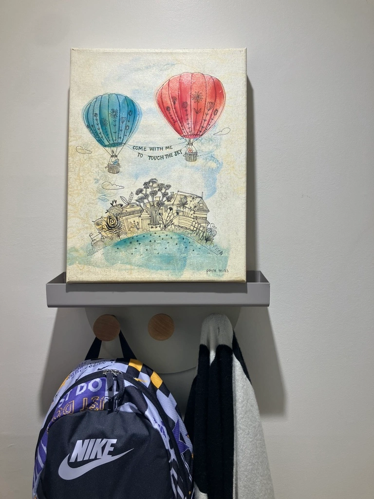 Cute and whimsical wall art for any imaginative little boy or girl’s room. Painted on canvas and has a clear coat to give texture.