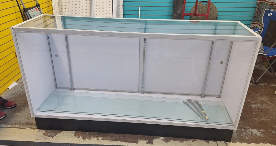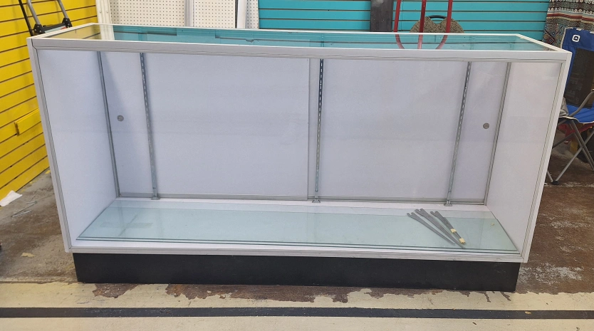 Glass Display Cabinet with silver colour framing, L72x D20 x H38 inches