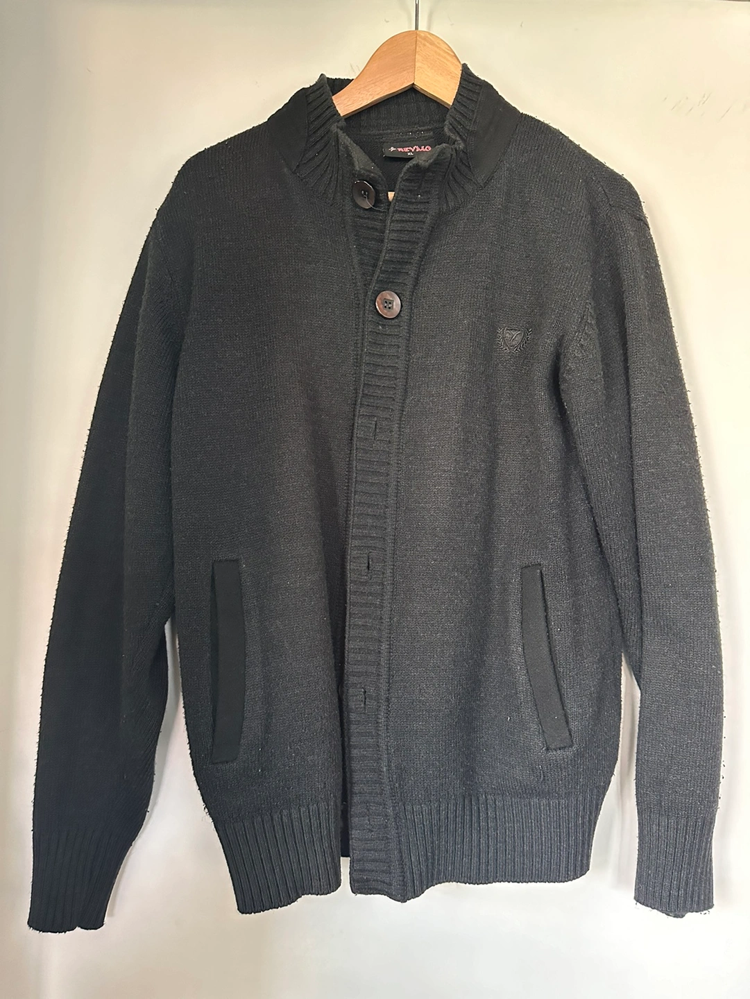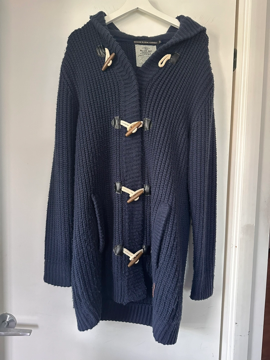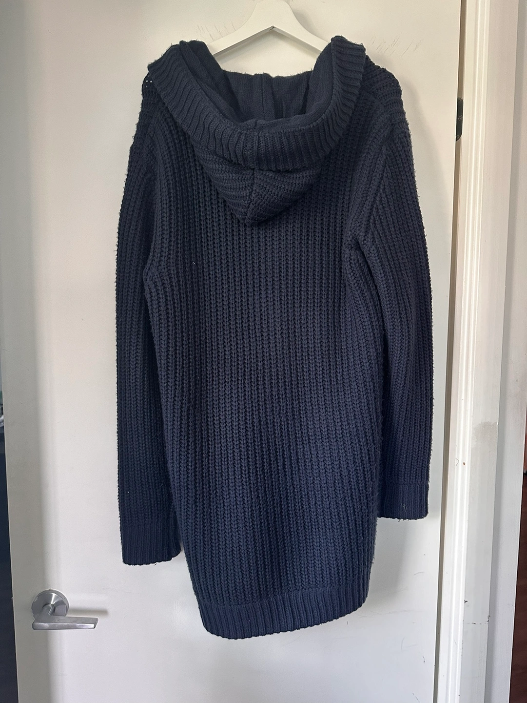 - Navy blue knitted cardigan