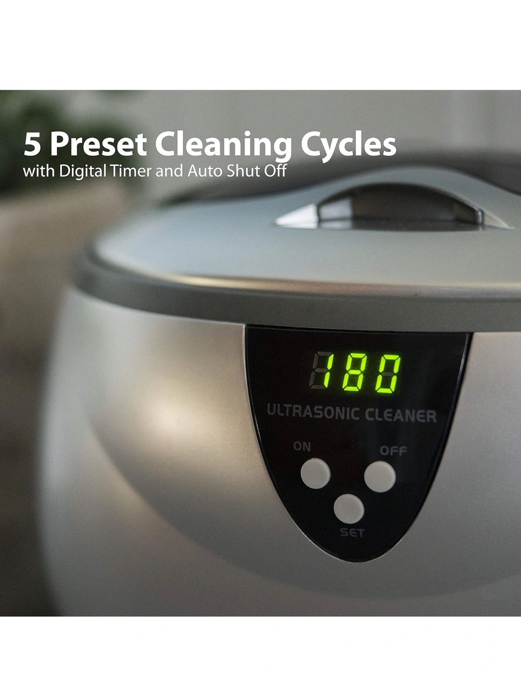 DURABLE STAINLESS-STEEL TANK - Features a generous 20 oz (600 mL) capacity that can easily fit multiple pieces of jewelry, dentures and hygiene items for a thorough and quick cleaning