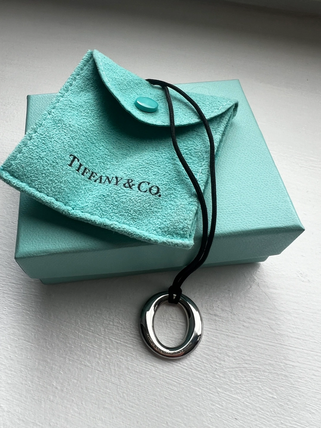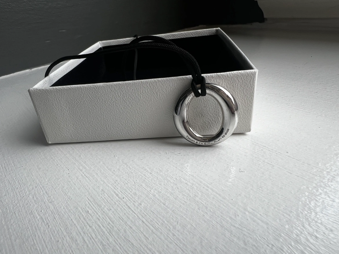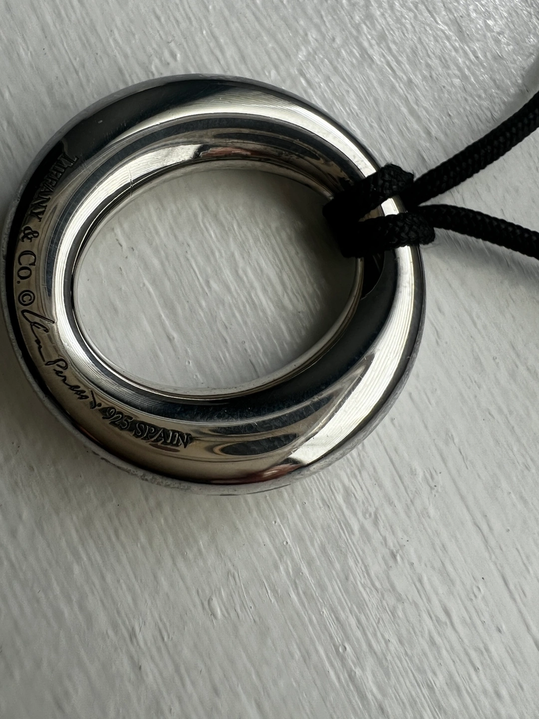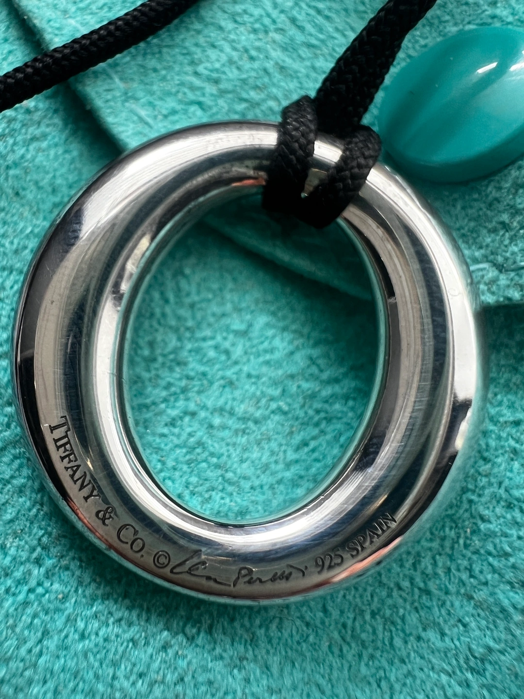 Tiffany Elsa Peretti .925 silver pendant with black silk cord