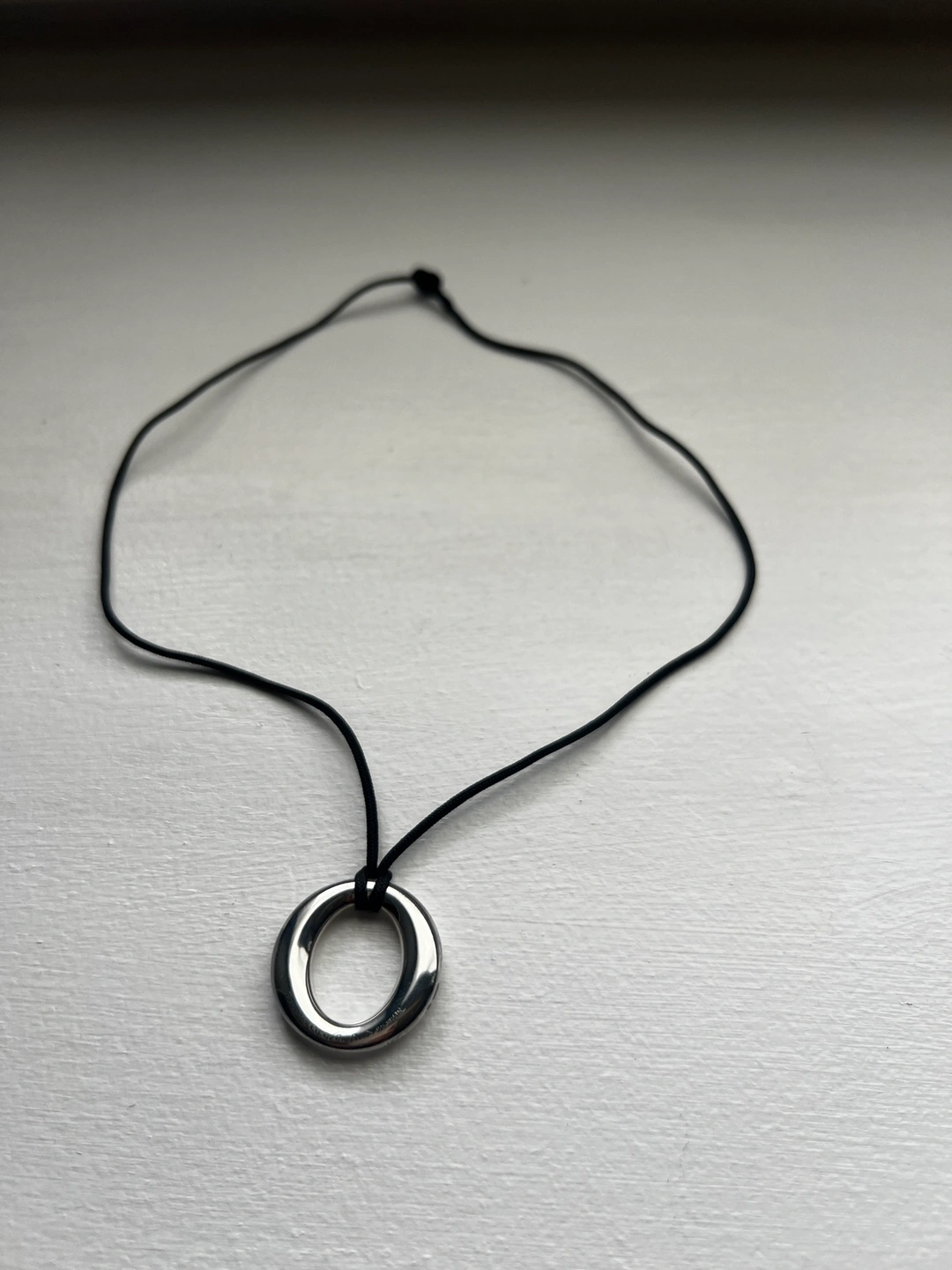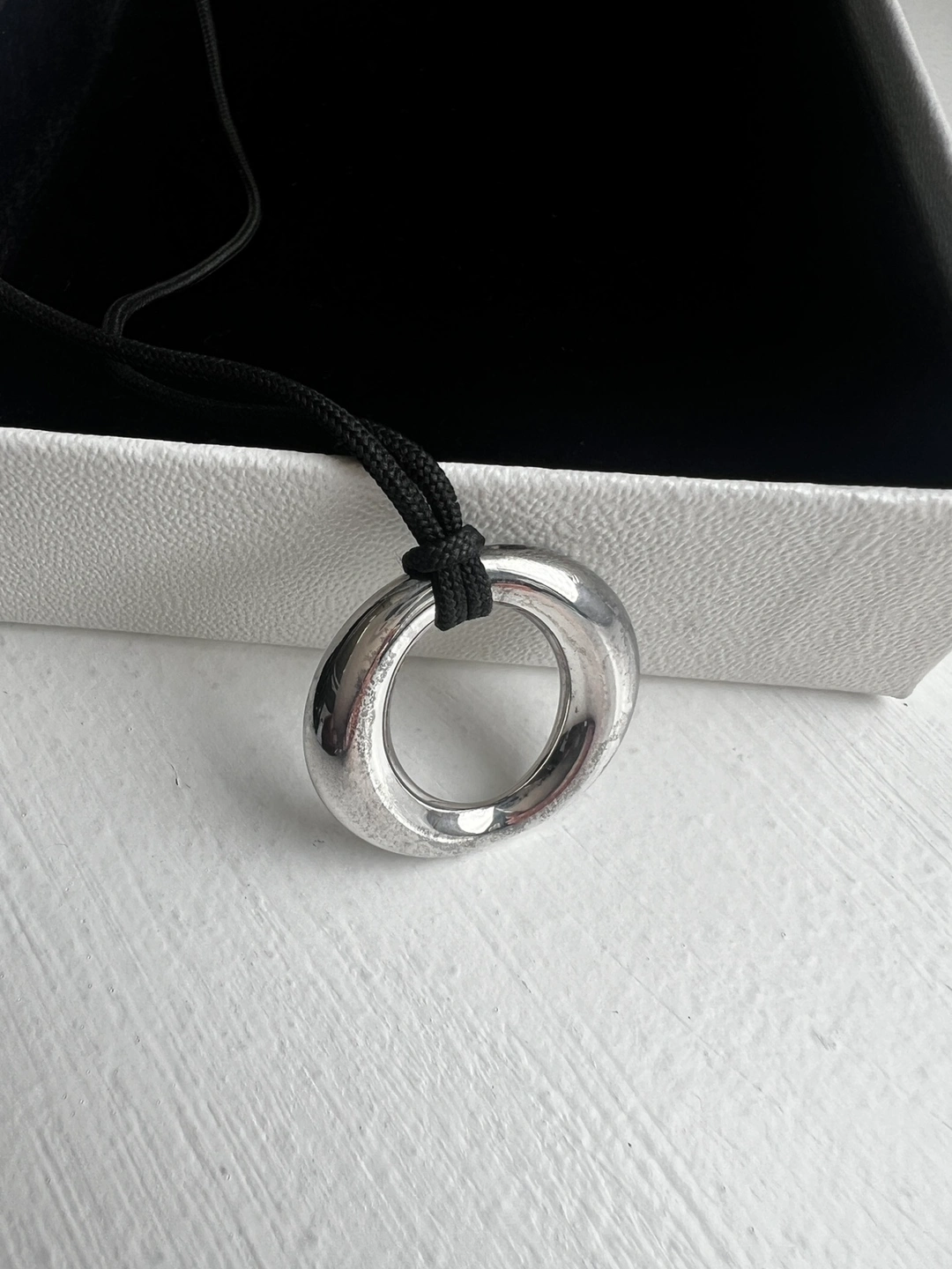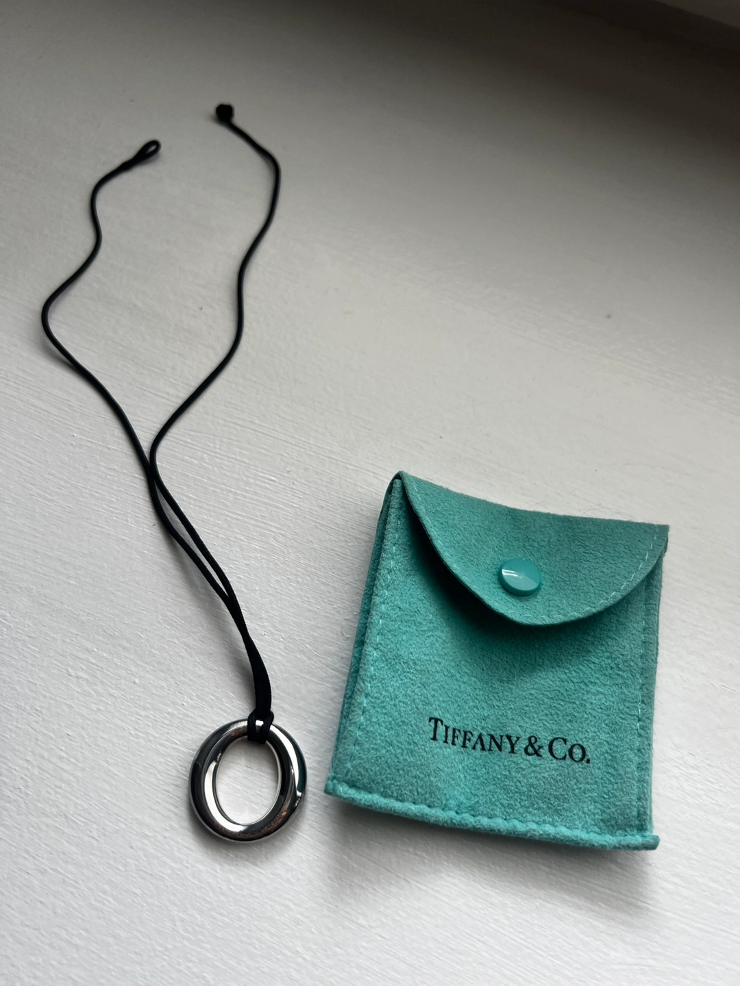 Tiffany Elsa Peretti .925 silver pendant with black silk cord