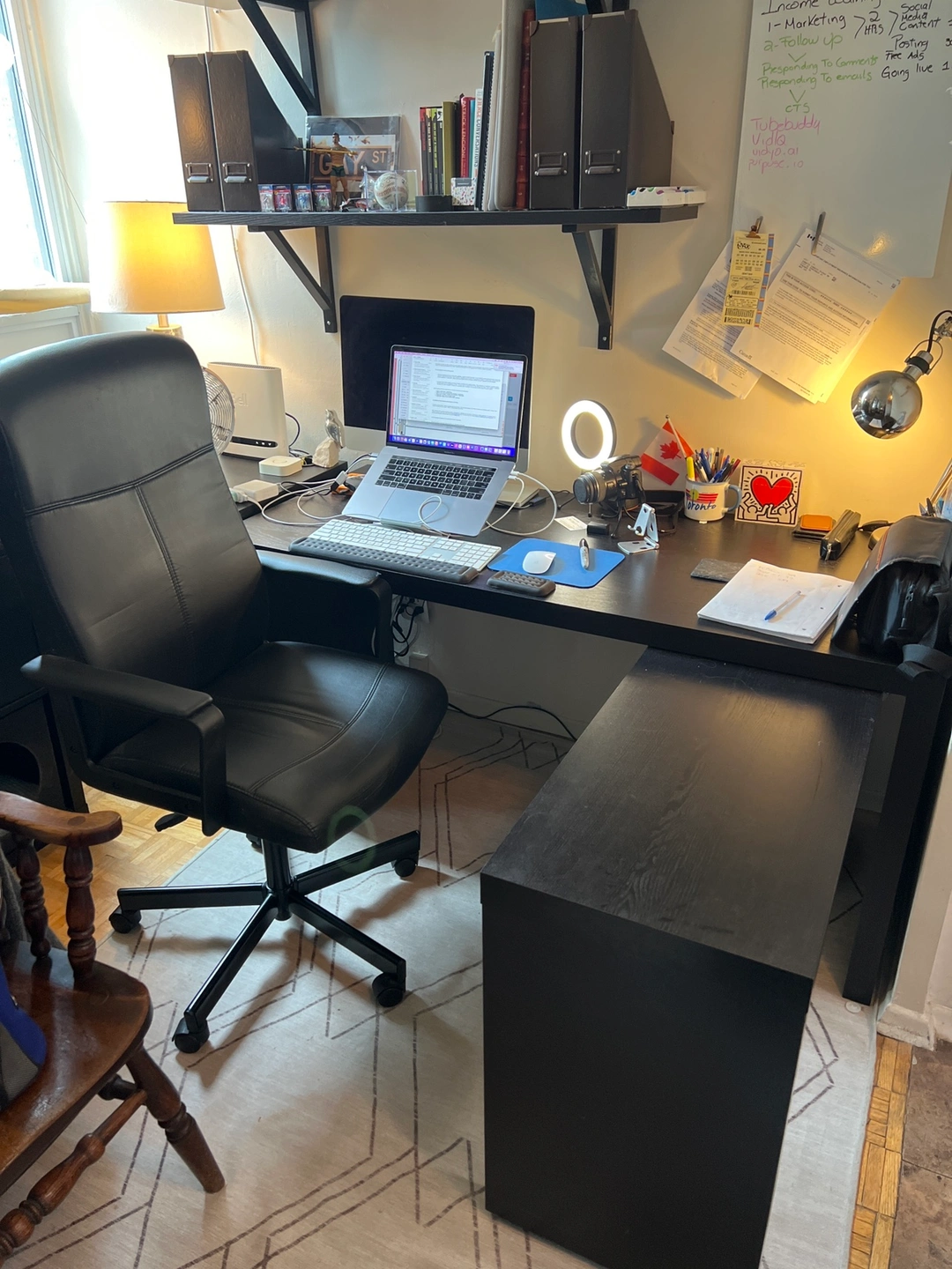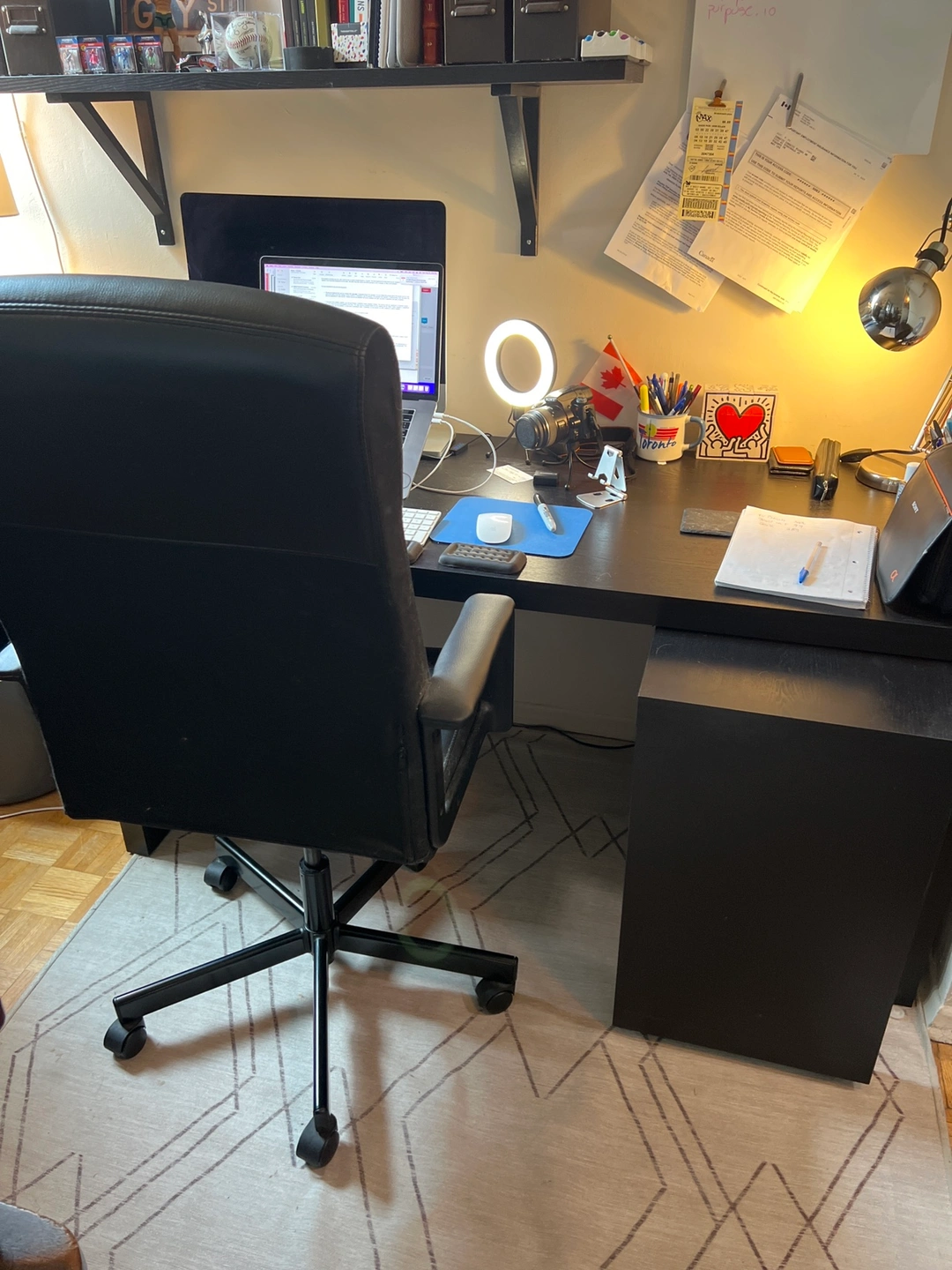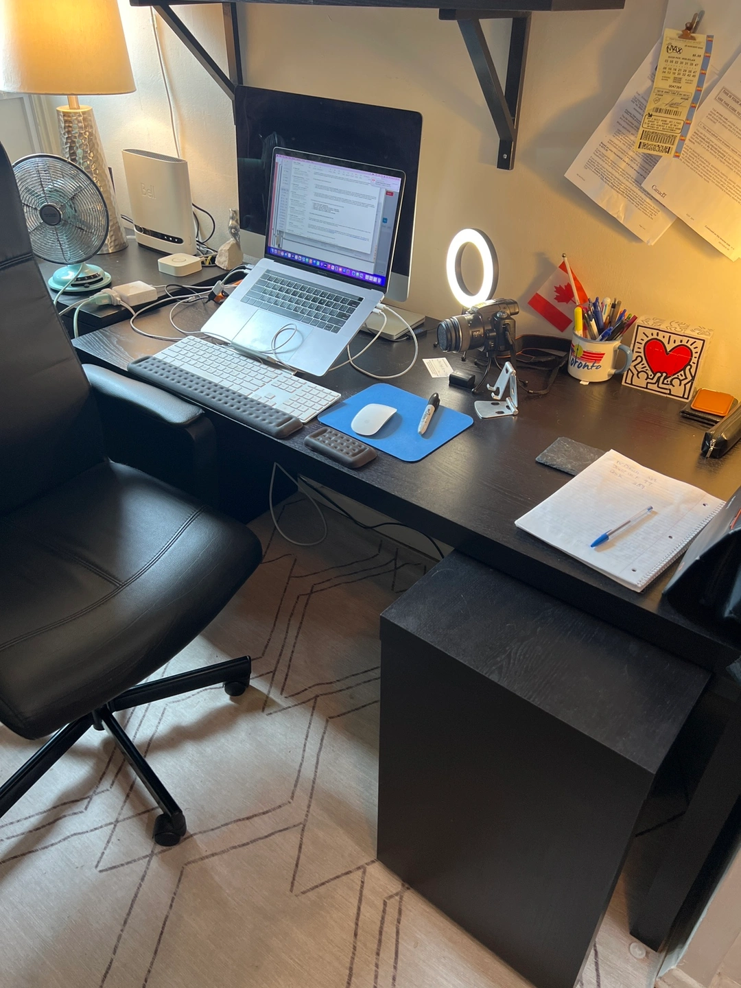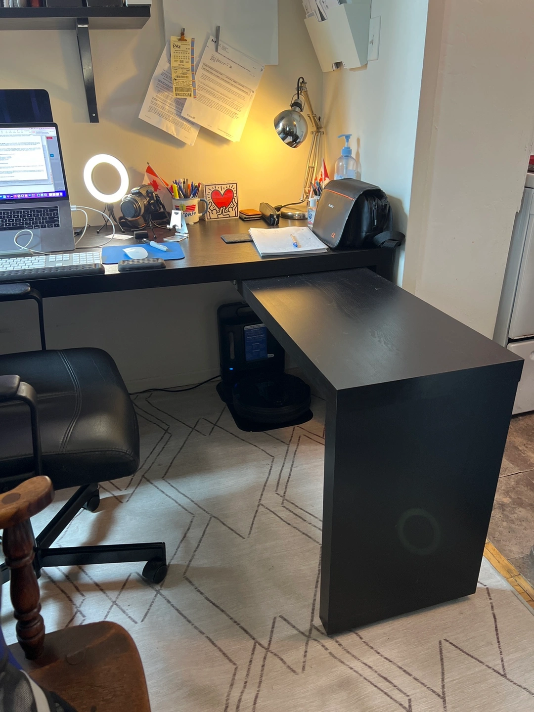 This desk is in excellent condition and has a great deal of functionality. It is made of sturdy, high quality materials. The desk is perfect for a home office or study.