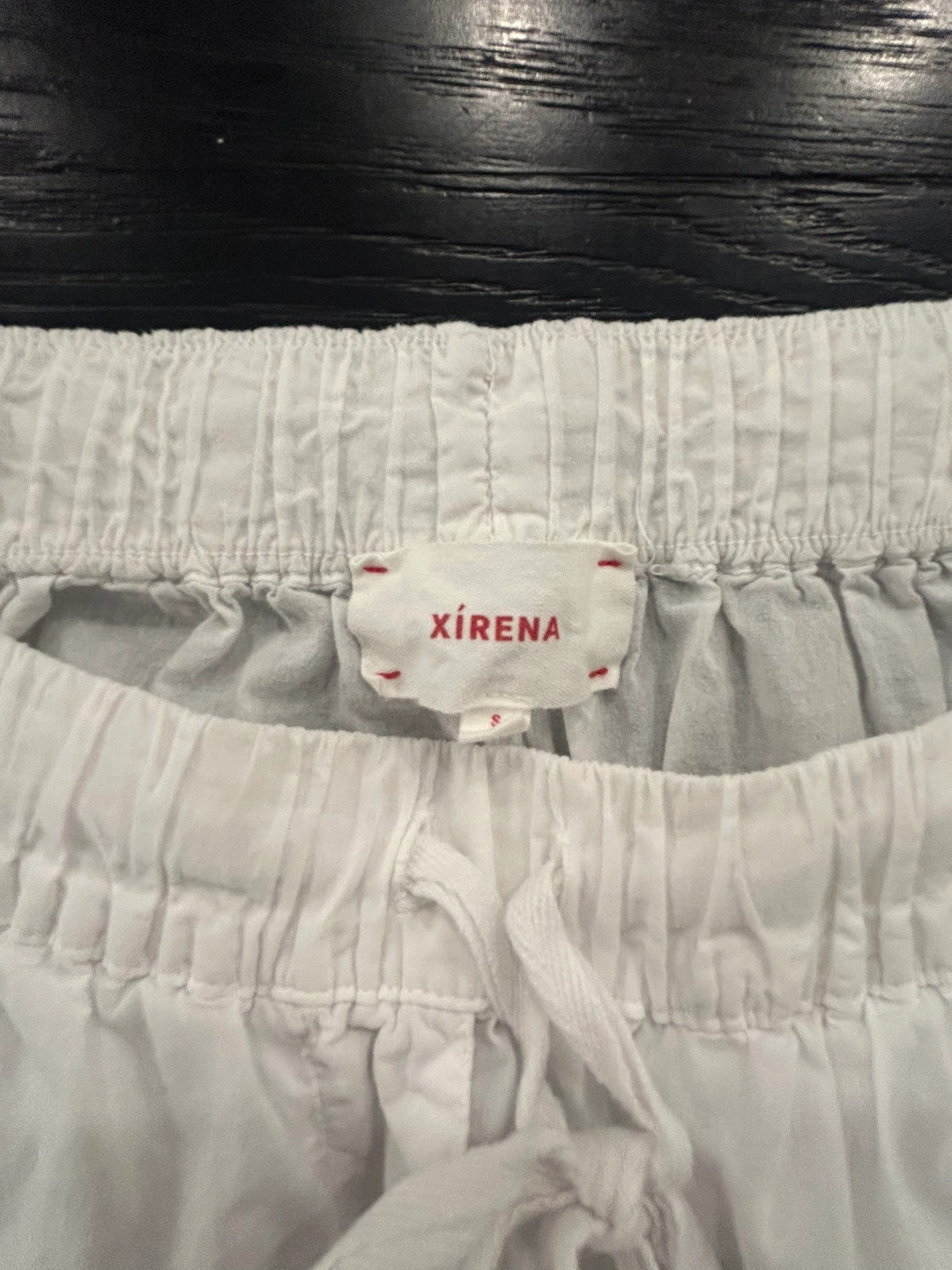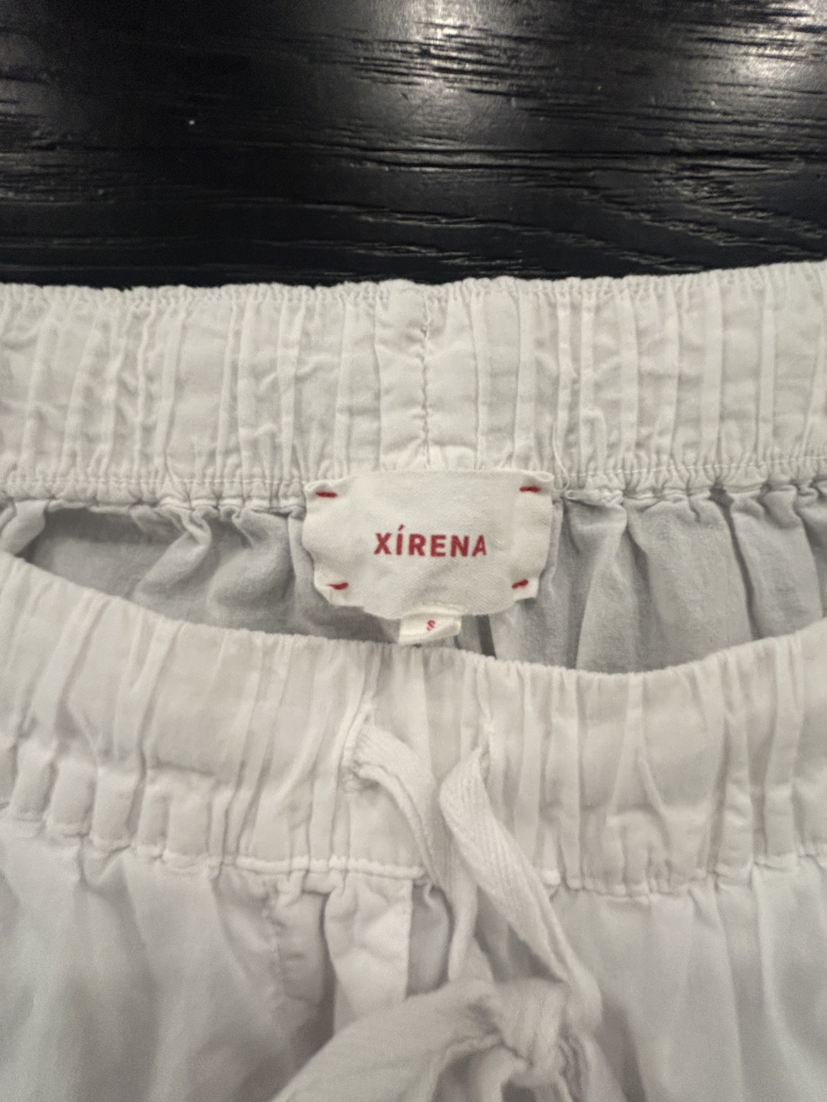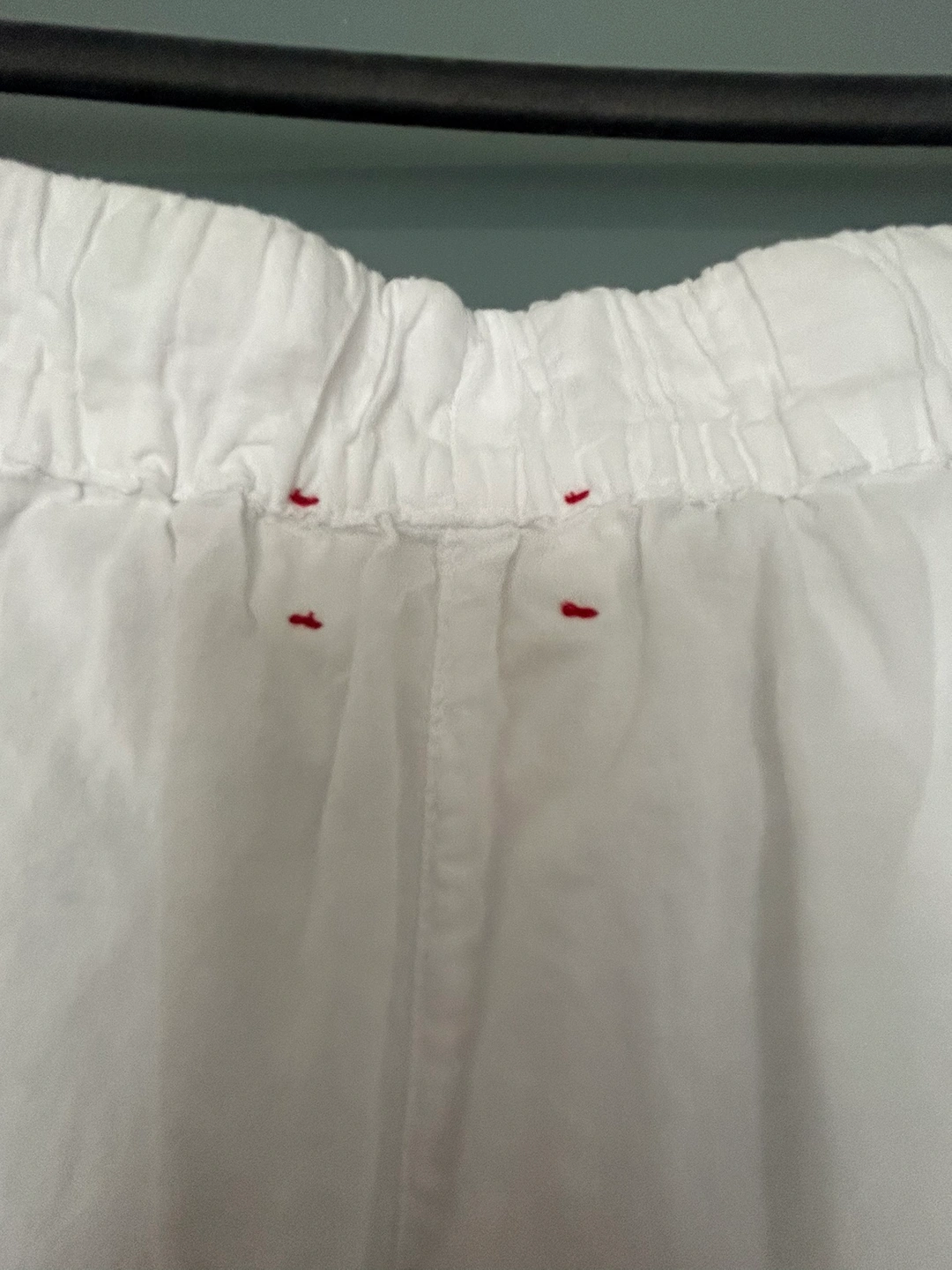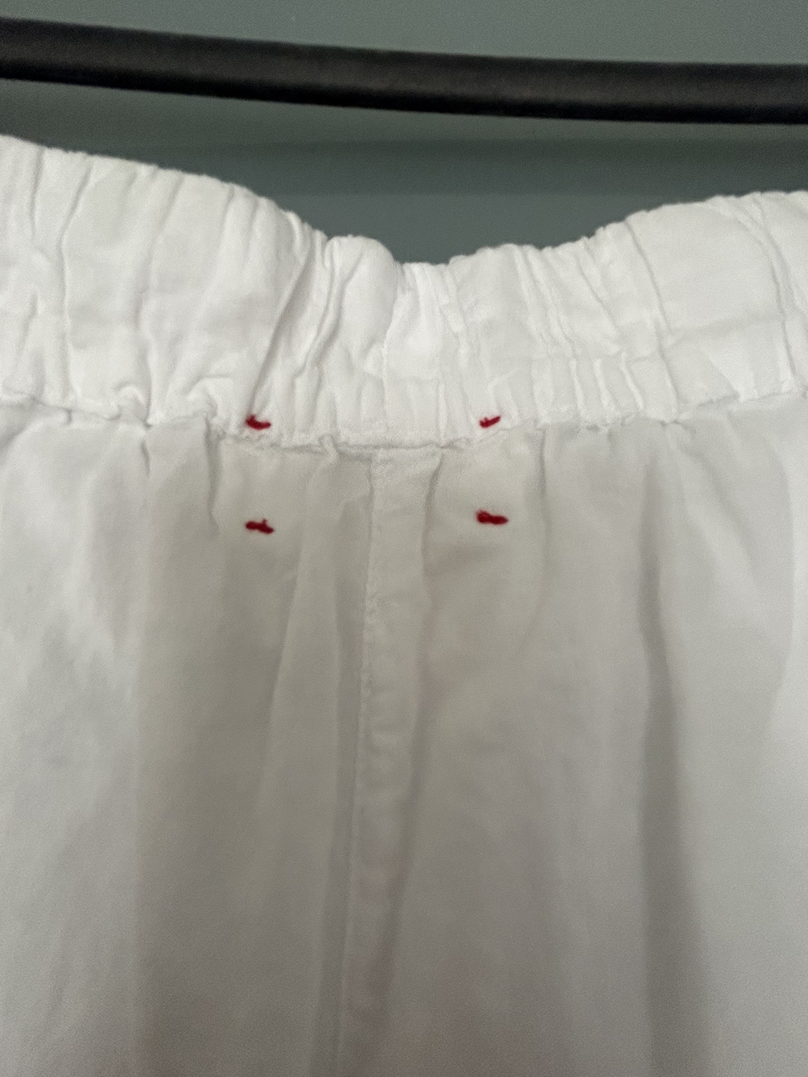 10White cropped pants with a drawstring waistband and side pockets. The pants are made of a lightweight fabric and are perfect for the warmer months. 100% cotton