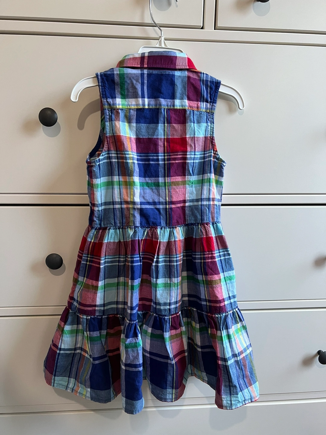 15Ralph Lauren. Cute sleeveless dress in a multi-coloured plaid pattern. Button up front with a collar.