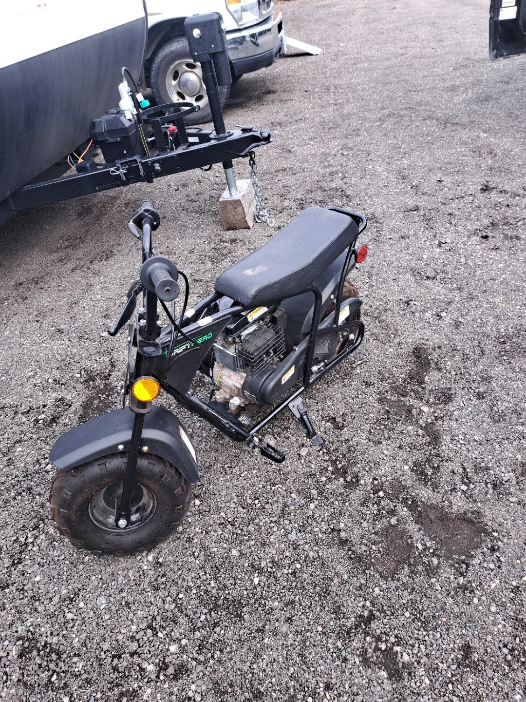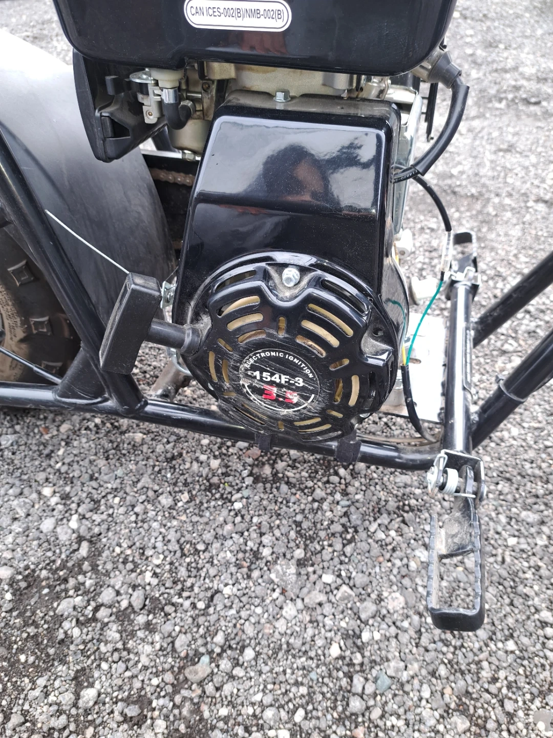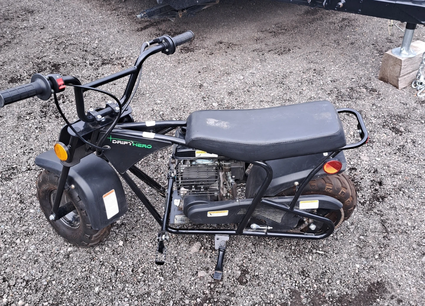 Used less than 2 hrs. Only on 2nd tank of gas, so practically new. Everything is new, tires are dusty from storage. Purchased last fall. Small rub mark on side cover, not from being dropped, from storage incident. Looking for possible trade "up" for dirt bike. (This bike +cash)