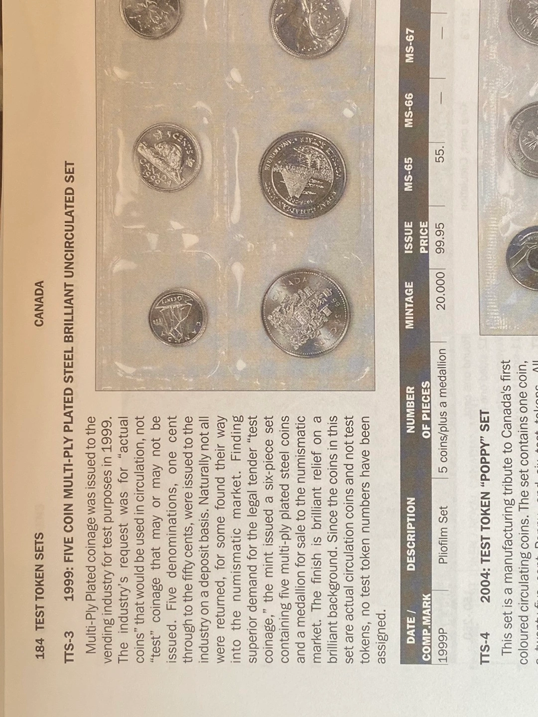 1999 Canada Plated Test Coin set 5 coins And Medal with the P mint mark. When the mint decided to change the material at the turn of the century.