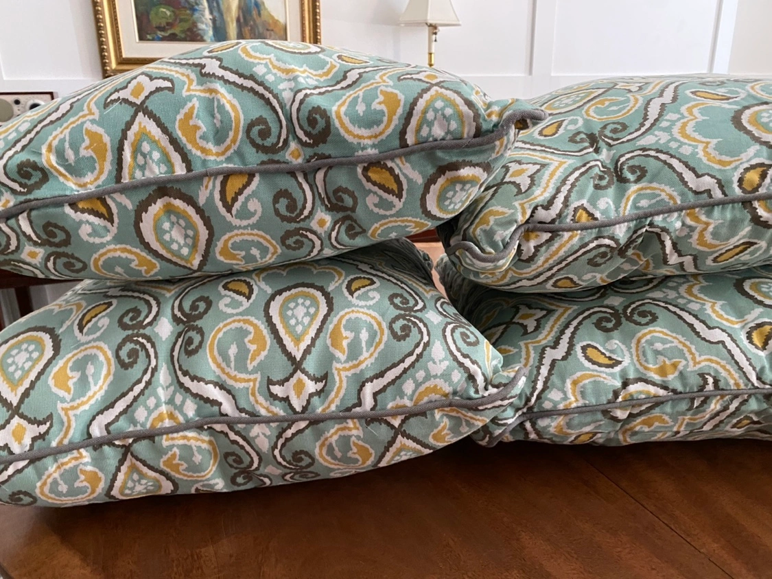 - 4 sofa cushions (paisley pattern in aqua with hints of mustard and light grey)