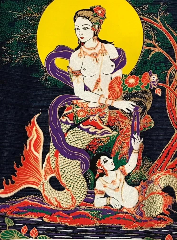 Vibrant Mermaid Print on Thai Silk
