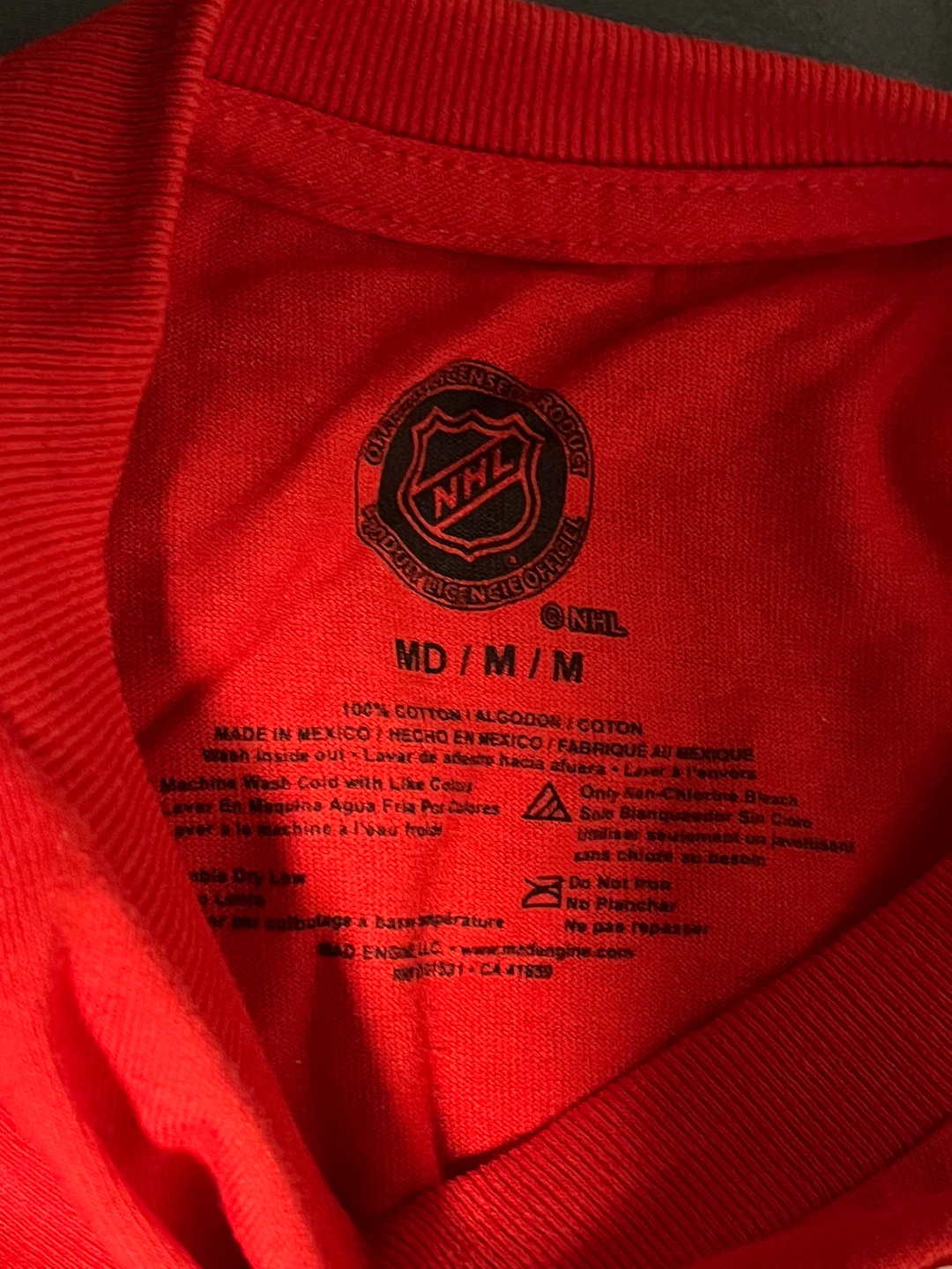 Red T-shirt featuring the Ottawa Senators logo. Size Medium.
