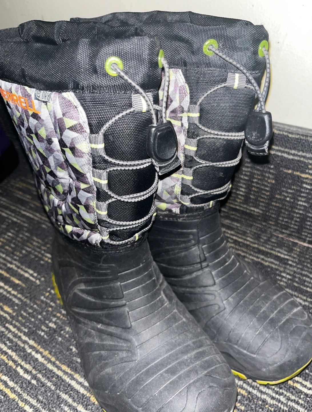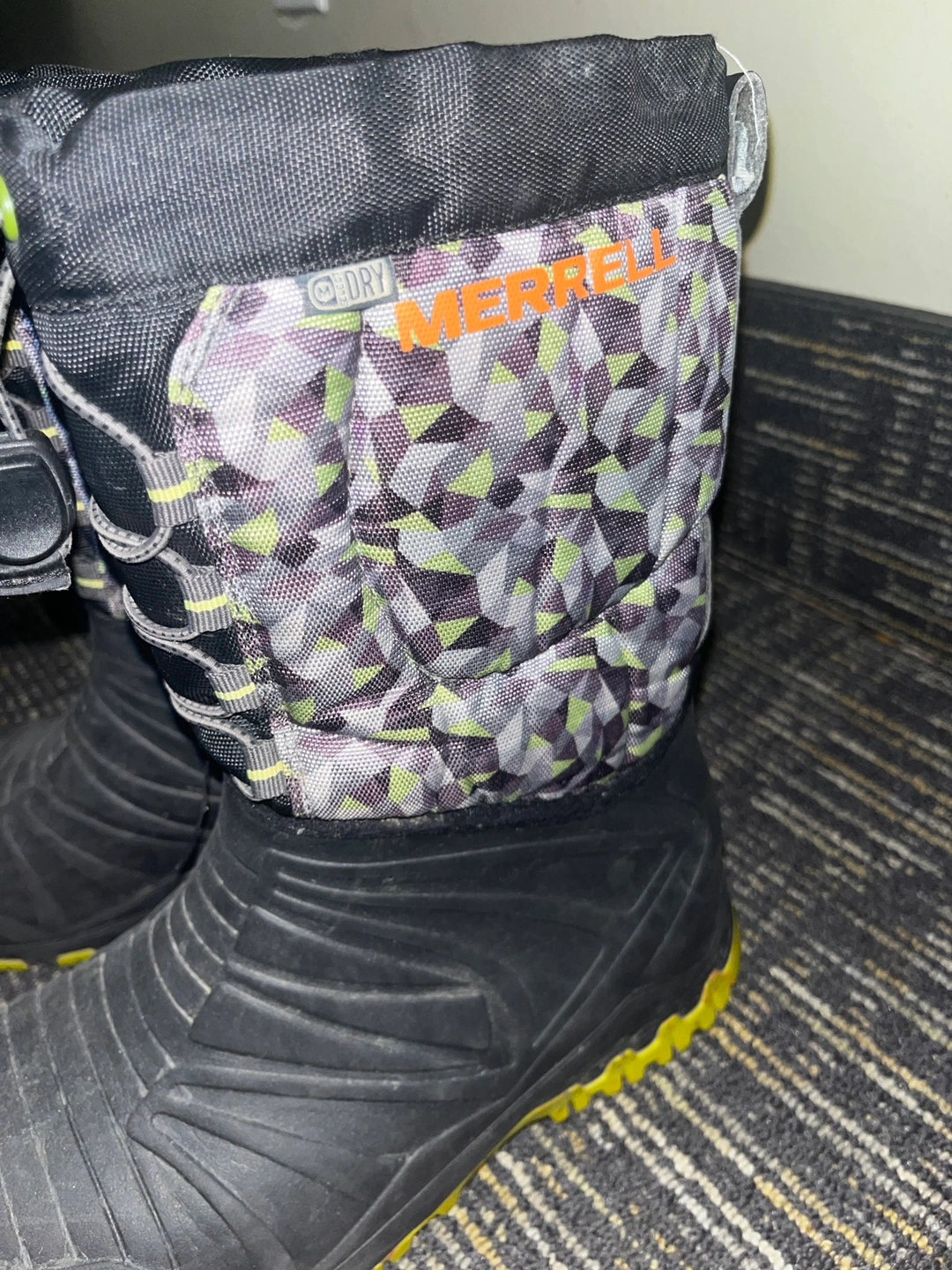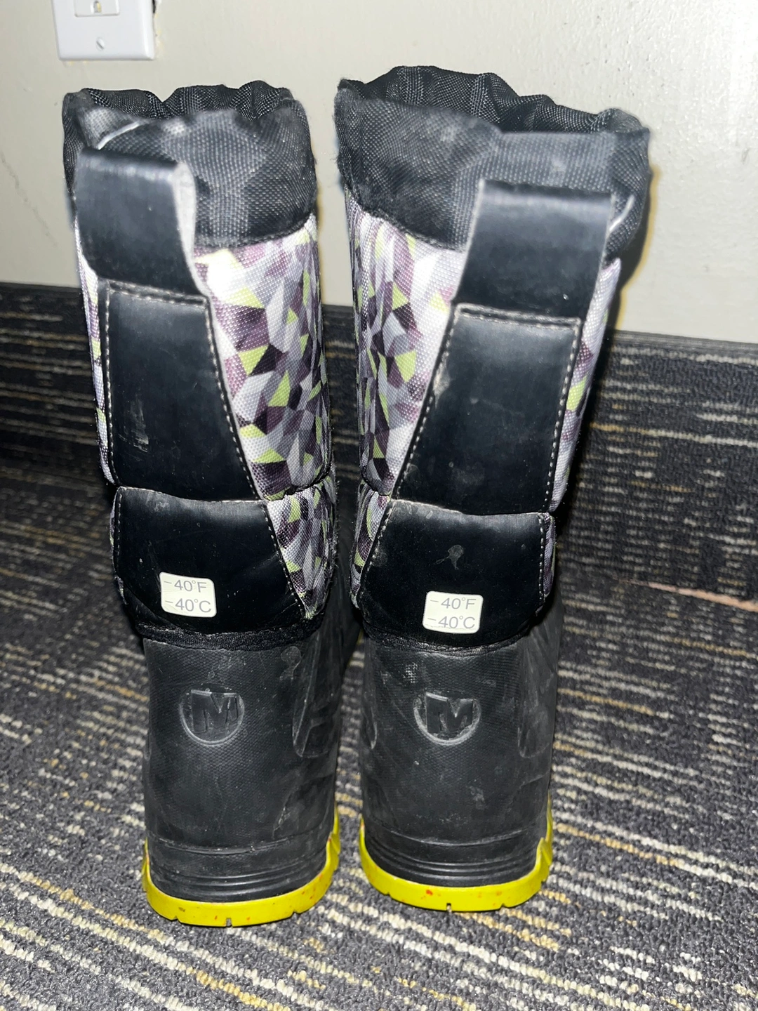 THERMOLITE Black and grey winter boots with a geometric pattern. Size US 4
