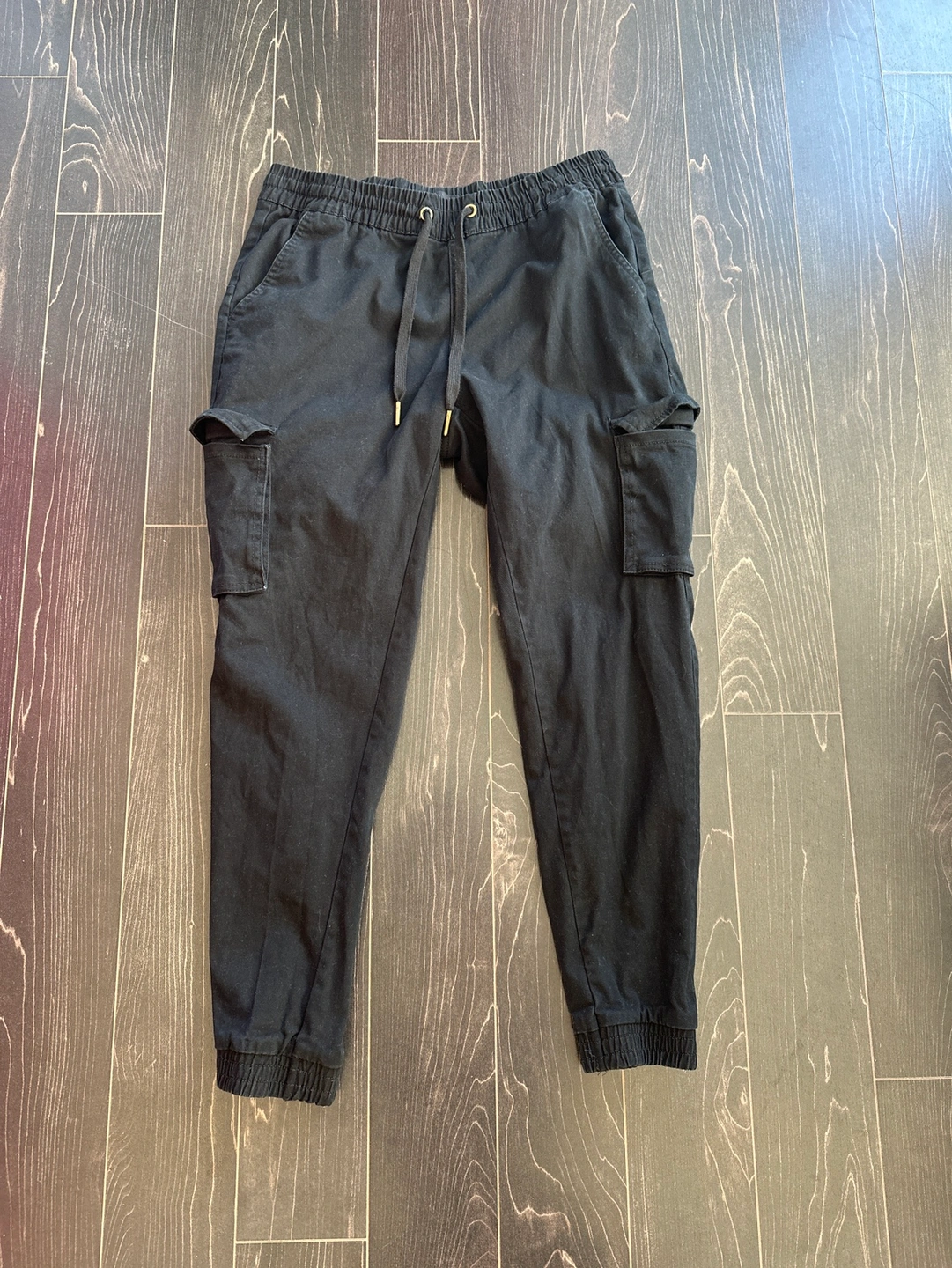 Black cargo pants with a drawstring waistband and ✨side pockets✨!!