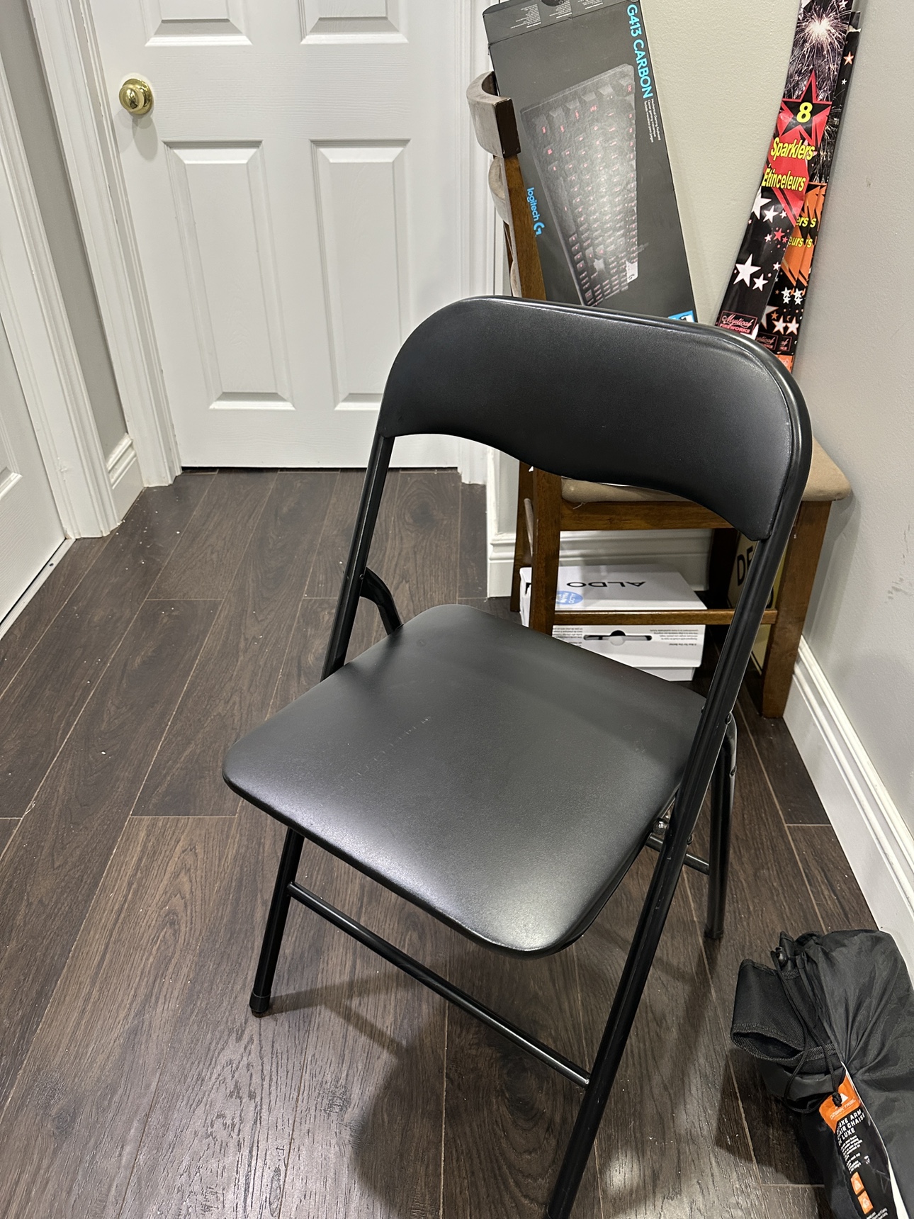1 / 21 / 2Buy & SellBlack Folding ChairBlack Folding Chair$19A black folding chair. It folds up for easy storage. Very good condition Total 5 chairs.ConditionLike newWHERE TO MEETAlton village/ BurlingtonView MapSELLERMadhuAlton N928 reviews2 chats·1 favorites·57 viewsSEND CHAT TO SELLERHi Madhu! I’m interested in your listing.Hi Madhu! I’m interested in your listing.Get the Karrot app to chatSign In to chat