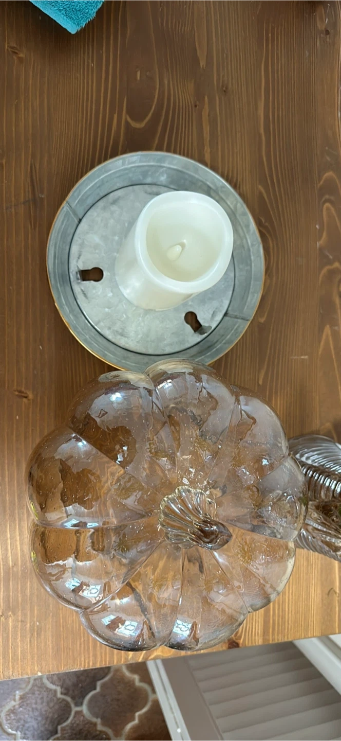 The glass pumpkin with led candle . It is brand new , never used got it from bed bath and beyond Xposted , pickup is highway 7 -Acton