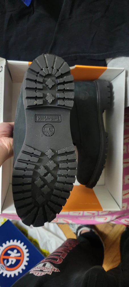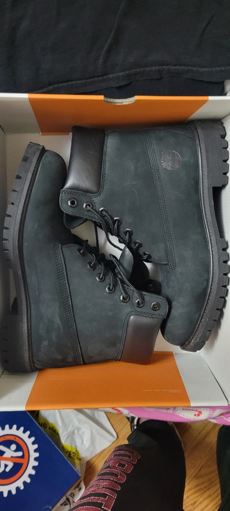 Black Nubuck Timberland boots, size 9.5. Comes with original box.