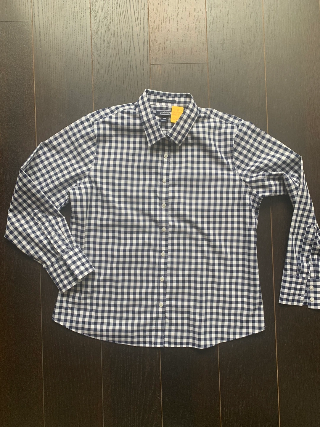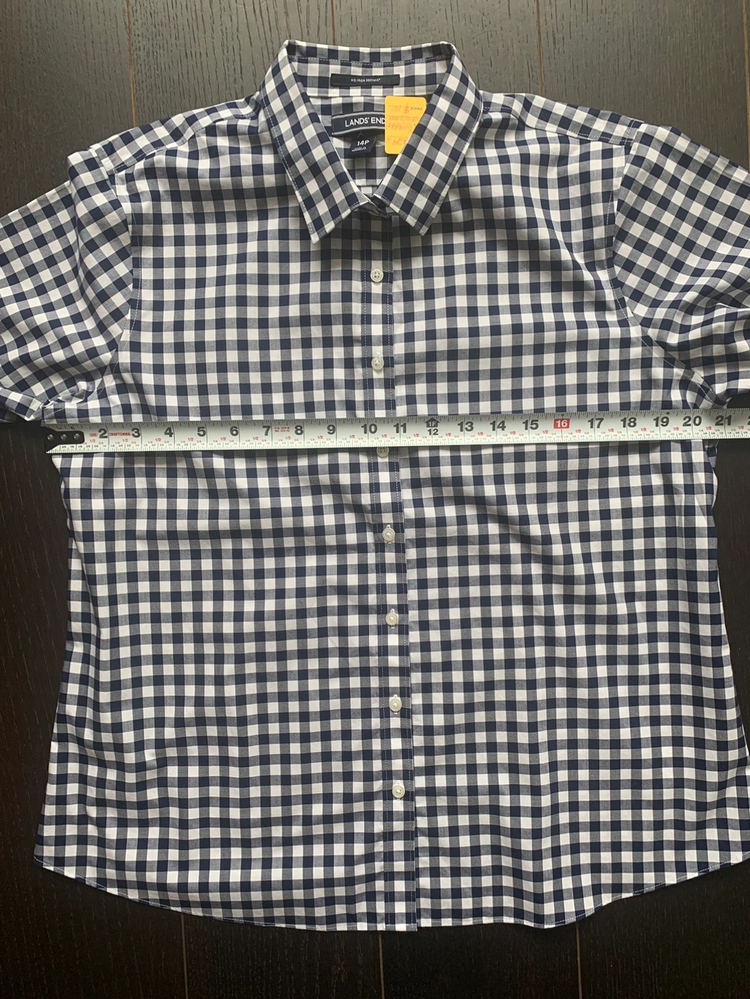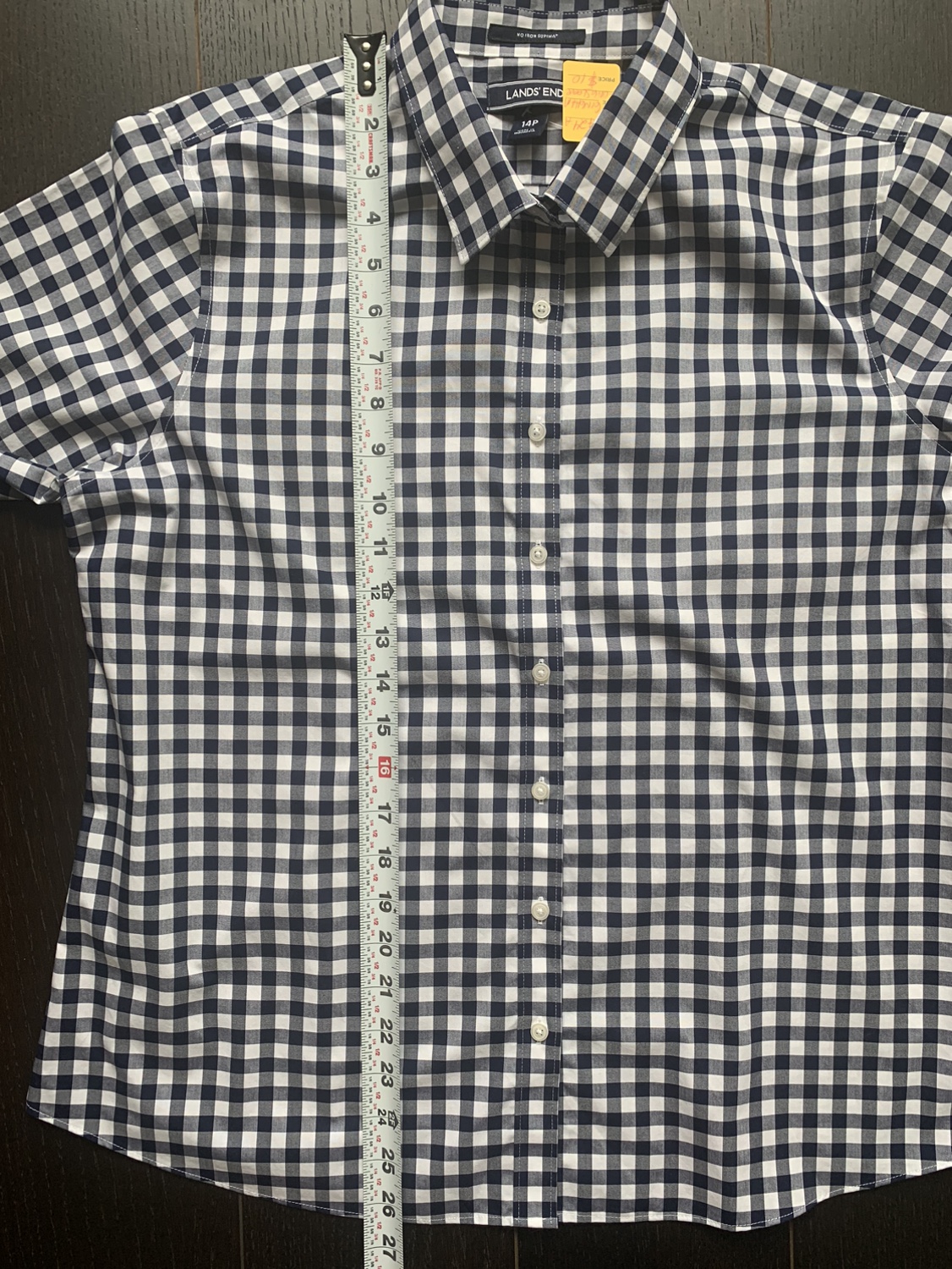Lands' End Women's Long Sleeve Gingham Shirt- Blue & White
