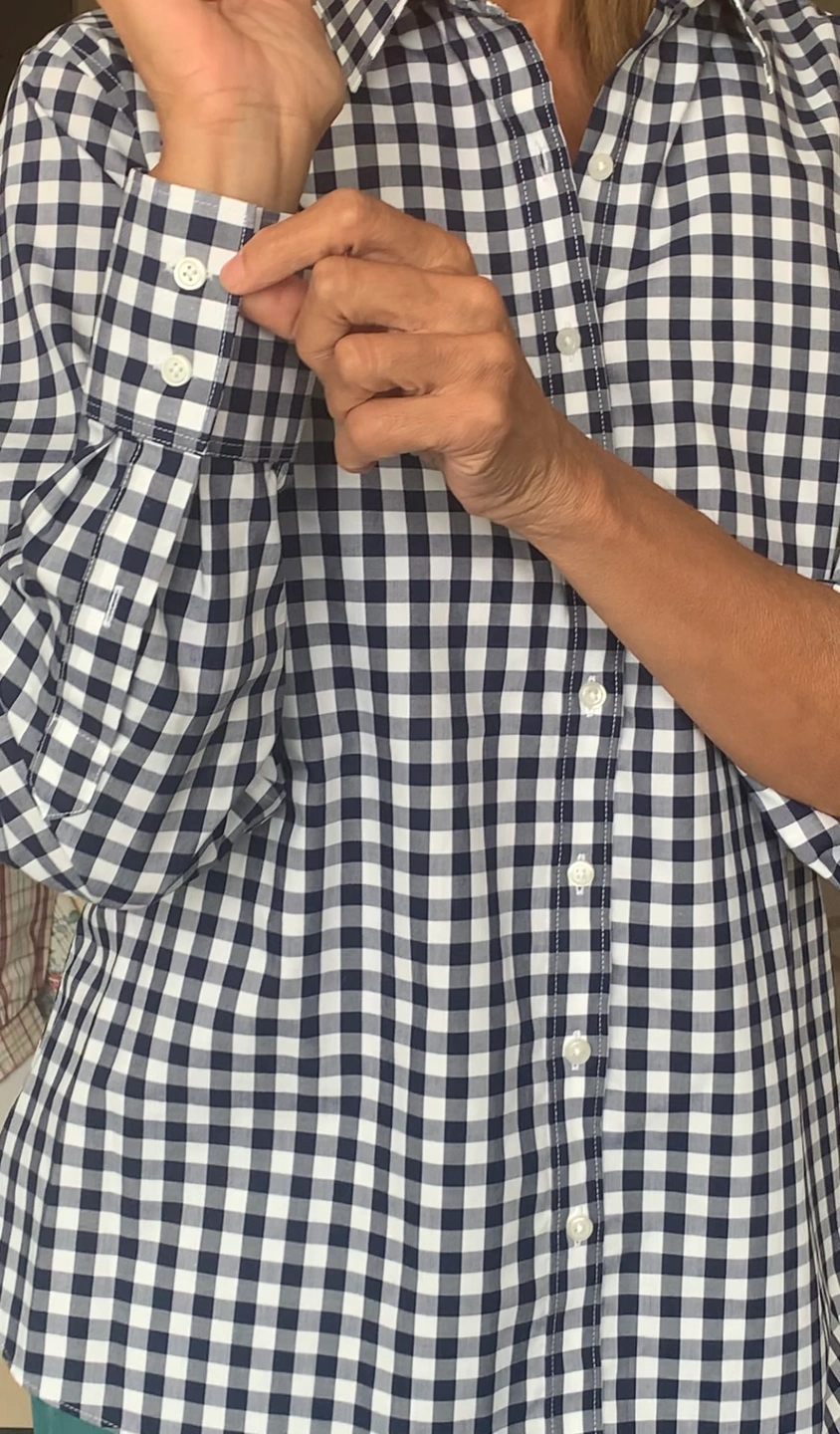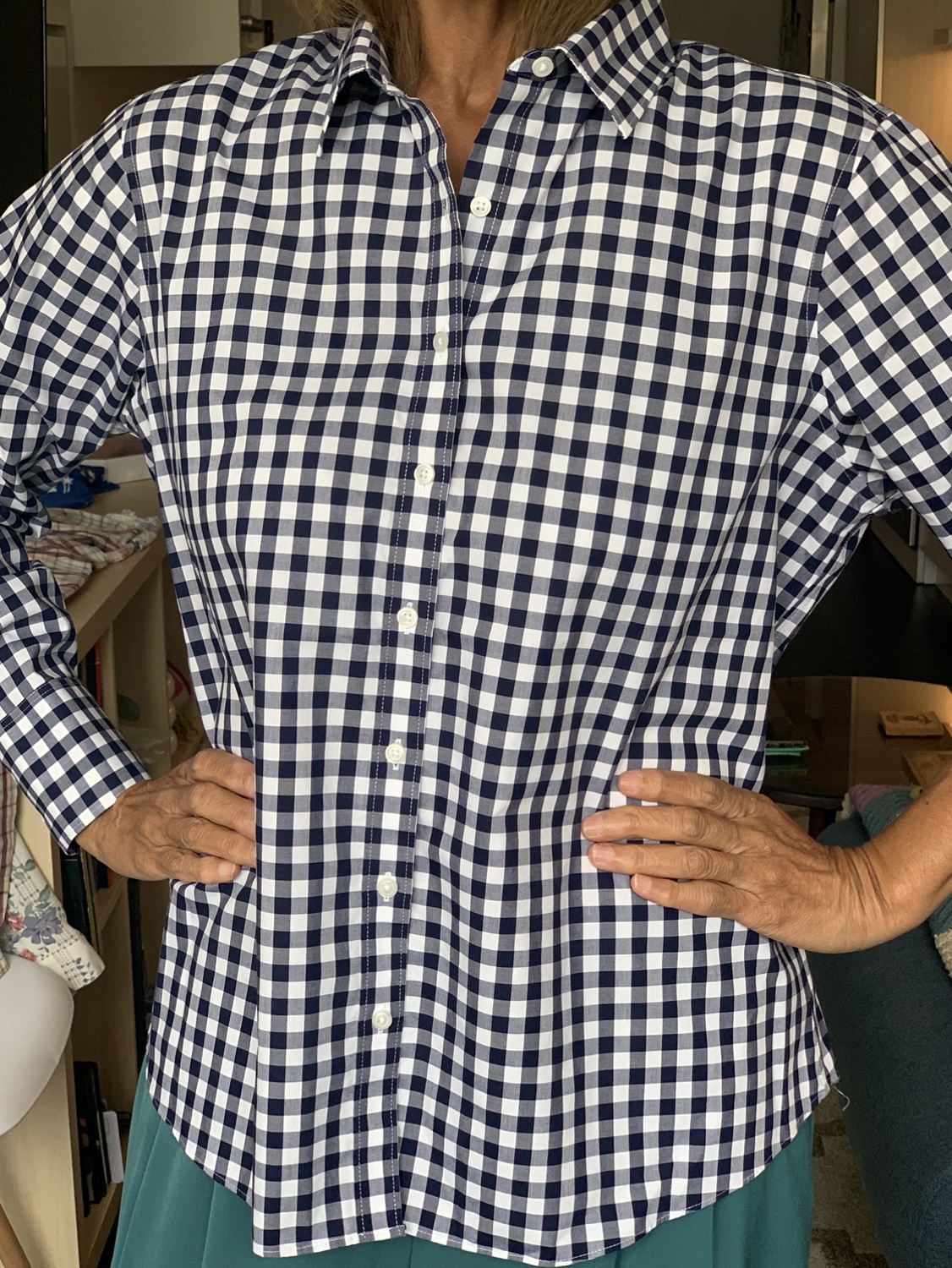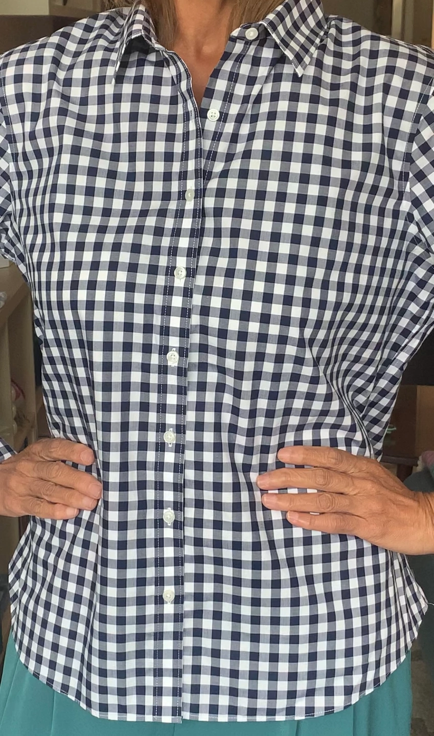 Lands' End Women's Long Sleeve Gingham Shirt- Blue & White