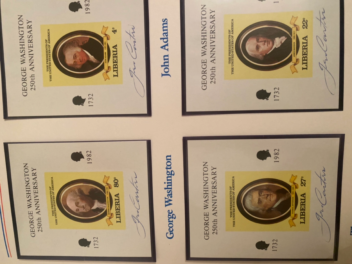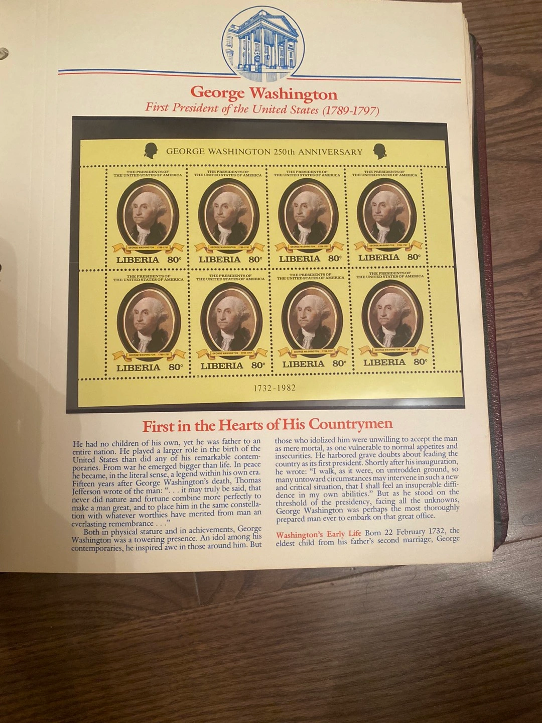 Collection of Stamps in sheets of 8 for each president George Washington to Ronald Regan